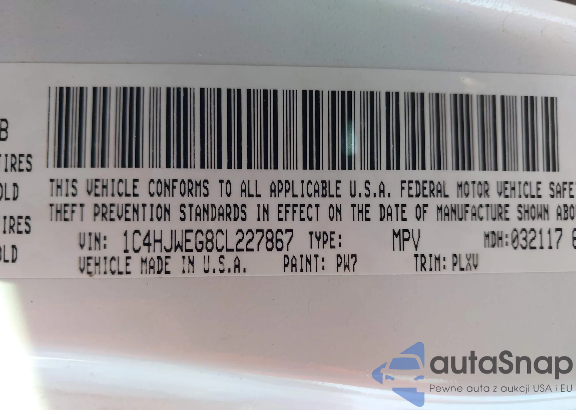 VIN: 1C4HJWEG8CL227867