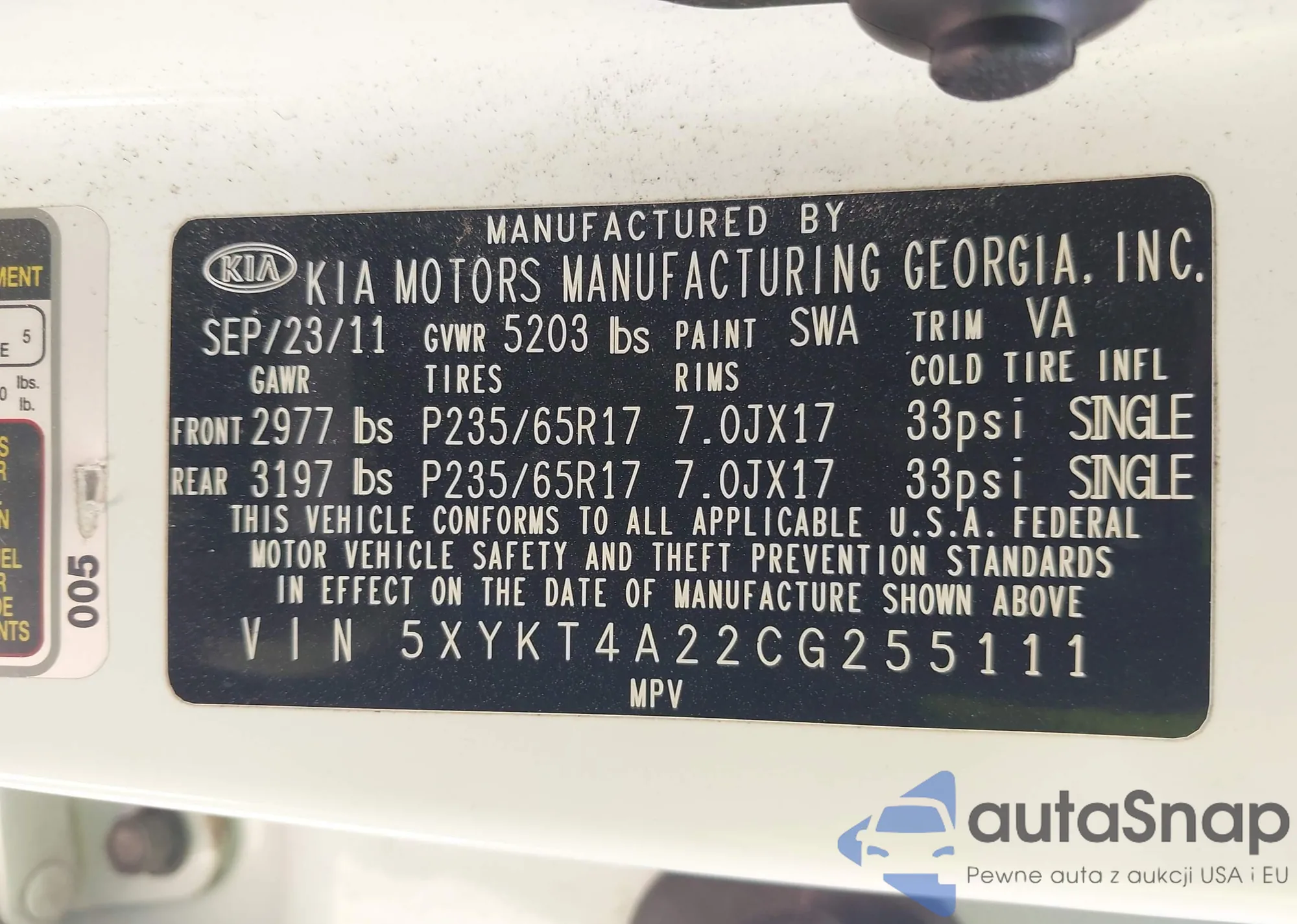 Samochód Kia Sorento 2012 (VIN 5XYKT4A22CG255111) sprzedaje go niezweryfikowany sprzedawca. Zalecamy raport Carfax i potwierdzenie możliwości rejestracji pojazdu przed zakupem.