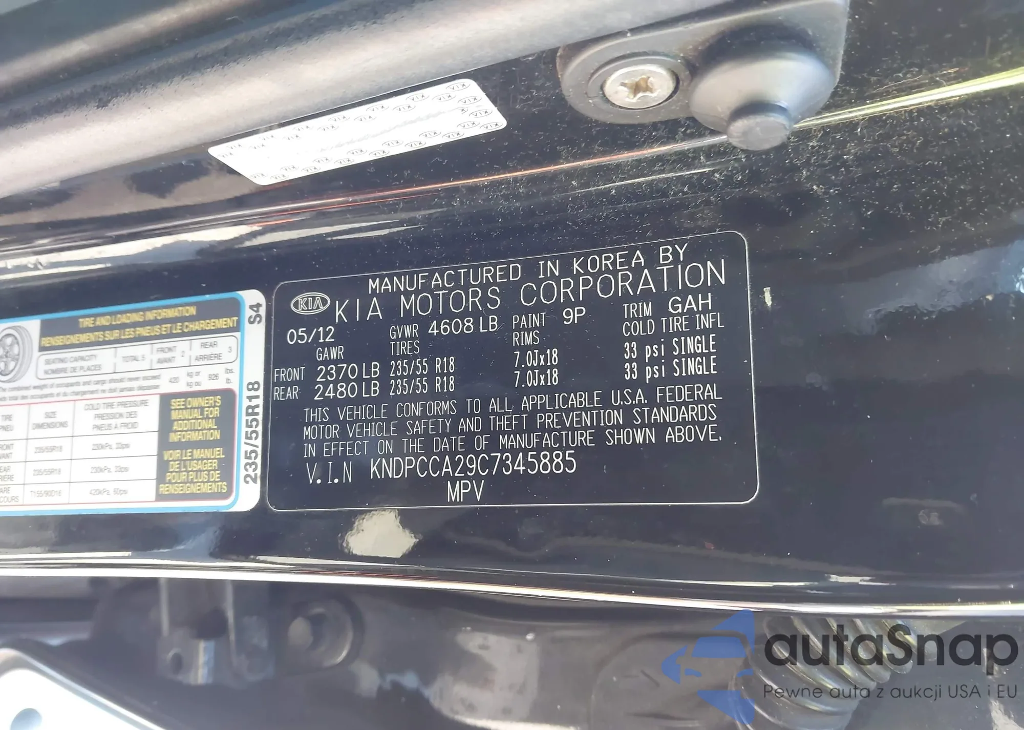 • VIN: KNDPCCA29C7345885