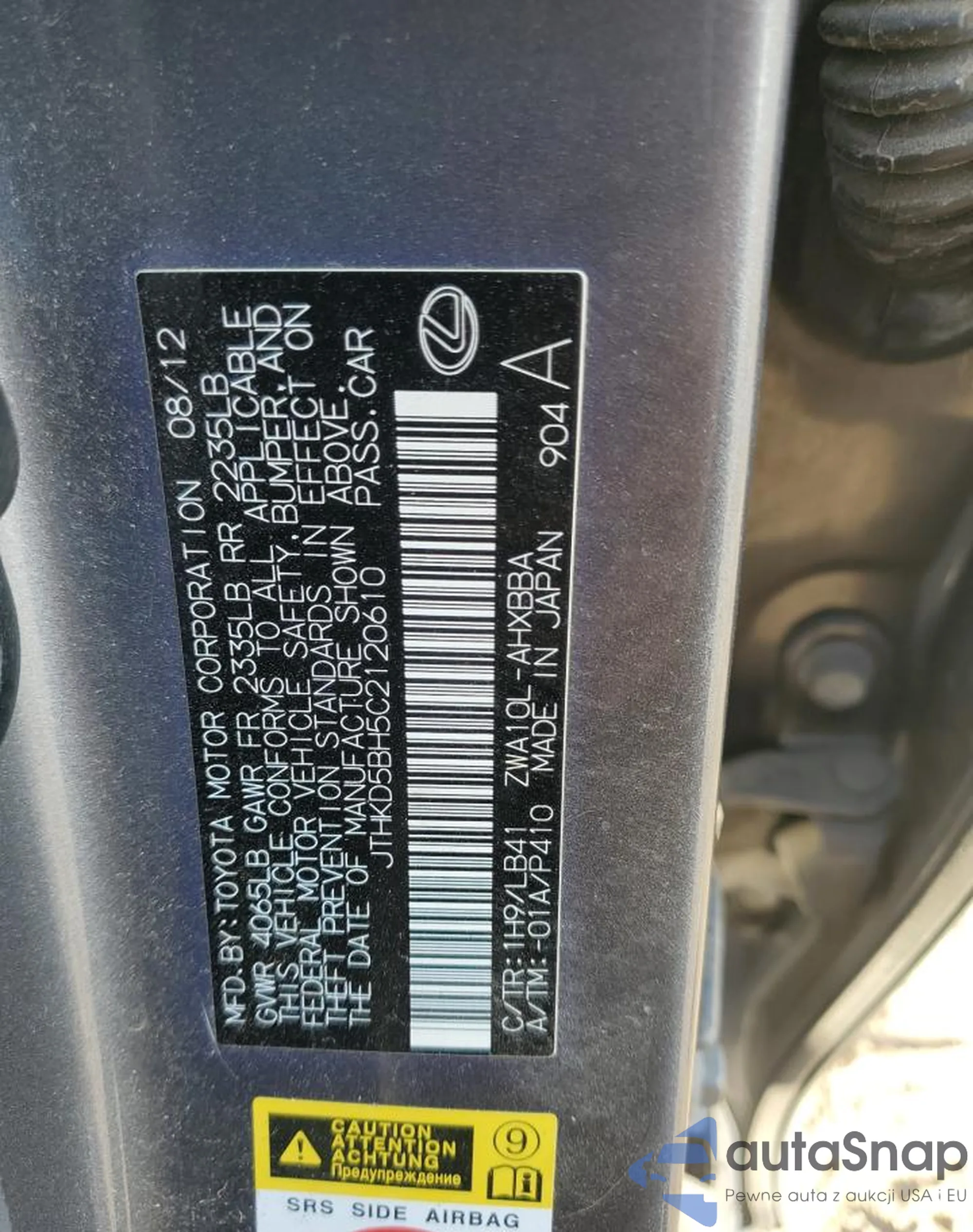 VIN: JTHKD5BH5C2120610