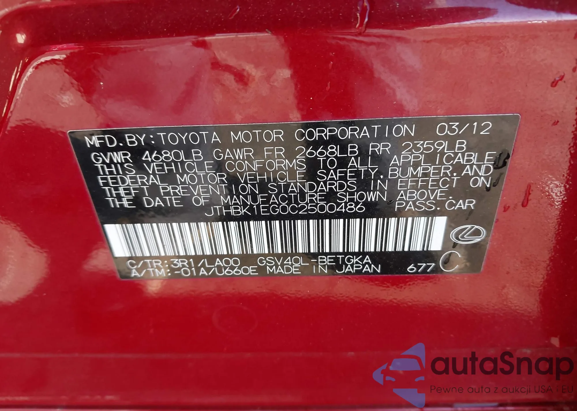 VIN: JTHBK1EG0C2500486