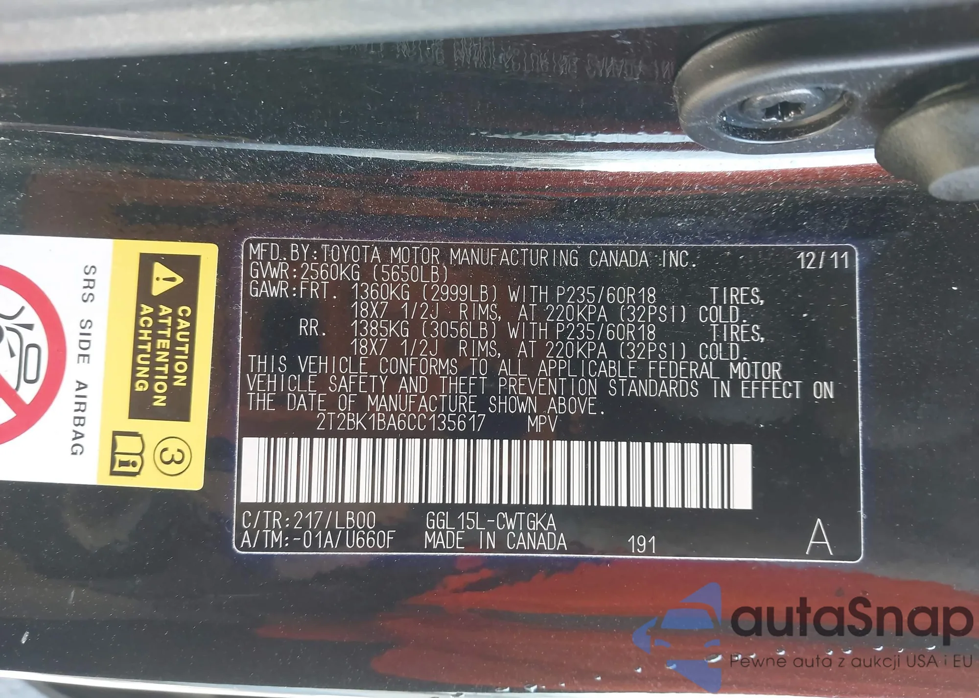 Samochód Lexus RX 2012 (VIN 2T2BK1BA6CC135617) nie był wcześniej licytowany. Dokumenty są czyste, przebieg odpowiada lub jest niższy niż średnia rynku. Sprzedaje go firma ubezpieczeniowa – polecamy zakup. Dostawa do portu zajmie ok. 6–8 tygodni.