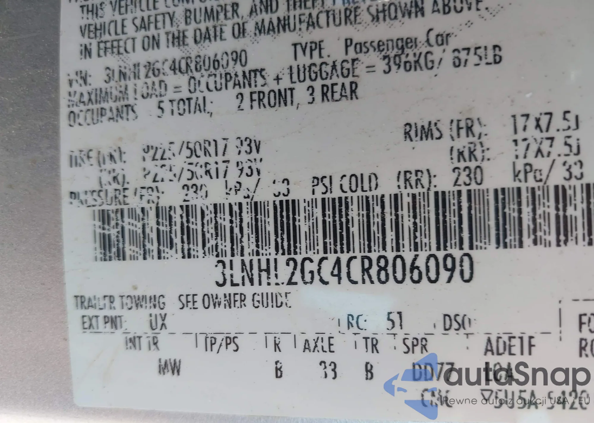 VIN: 3LNHL2GC4CR806090