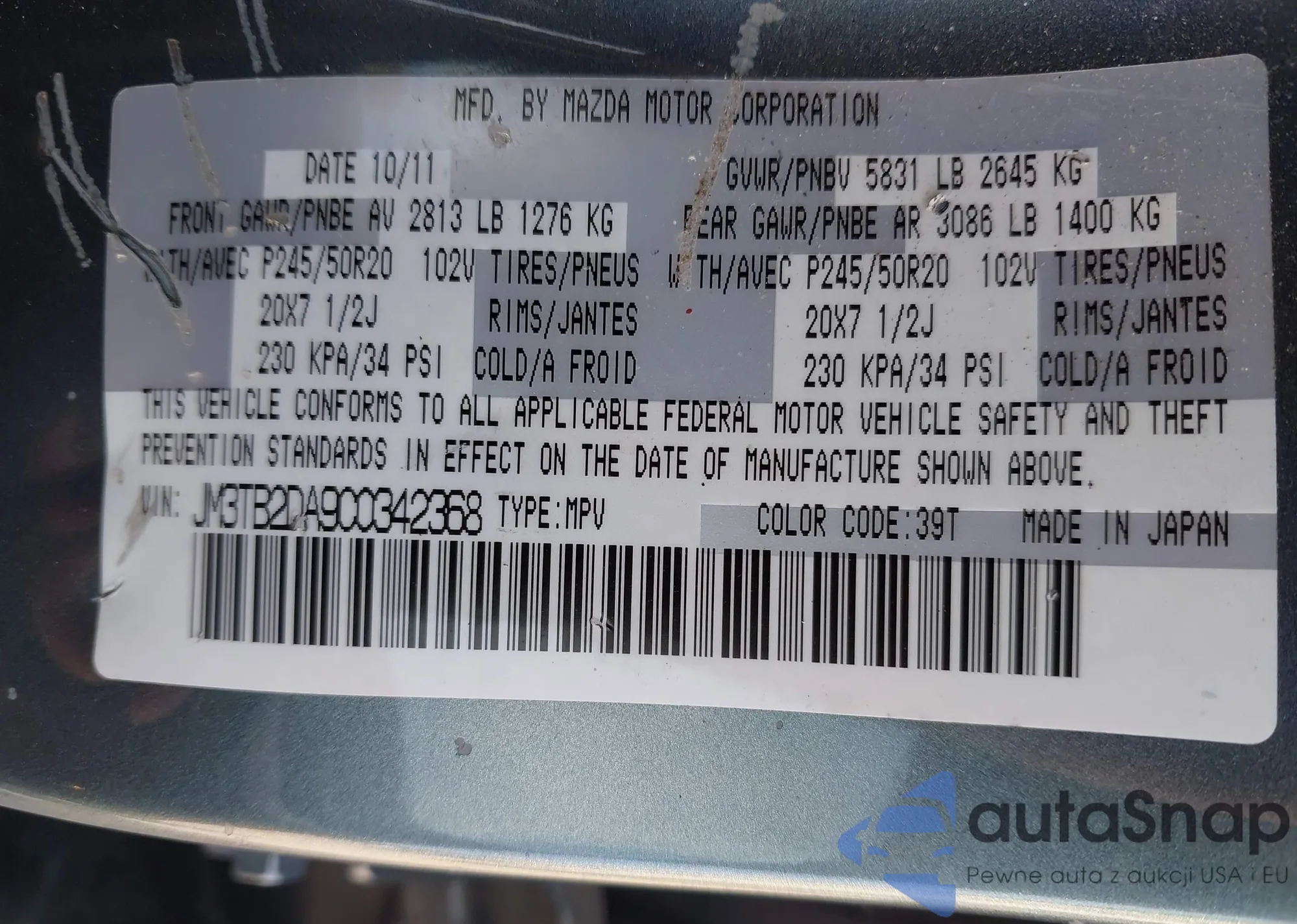 VIN: JM3TB2DA9C0342368
