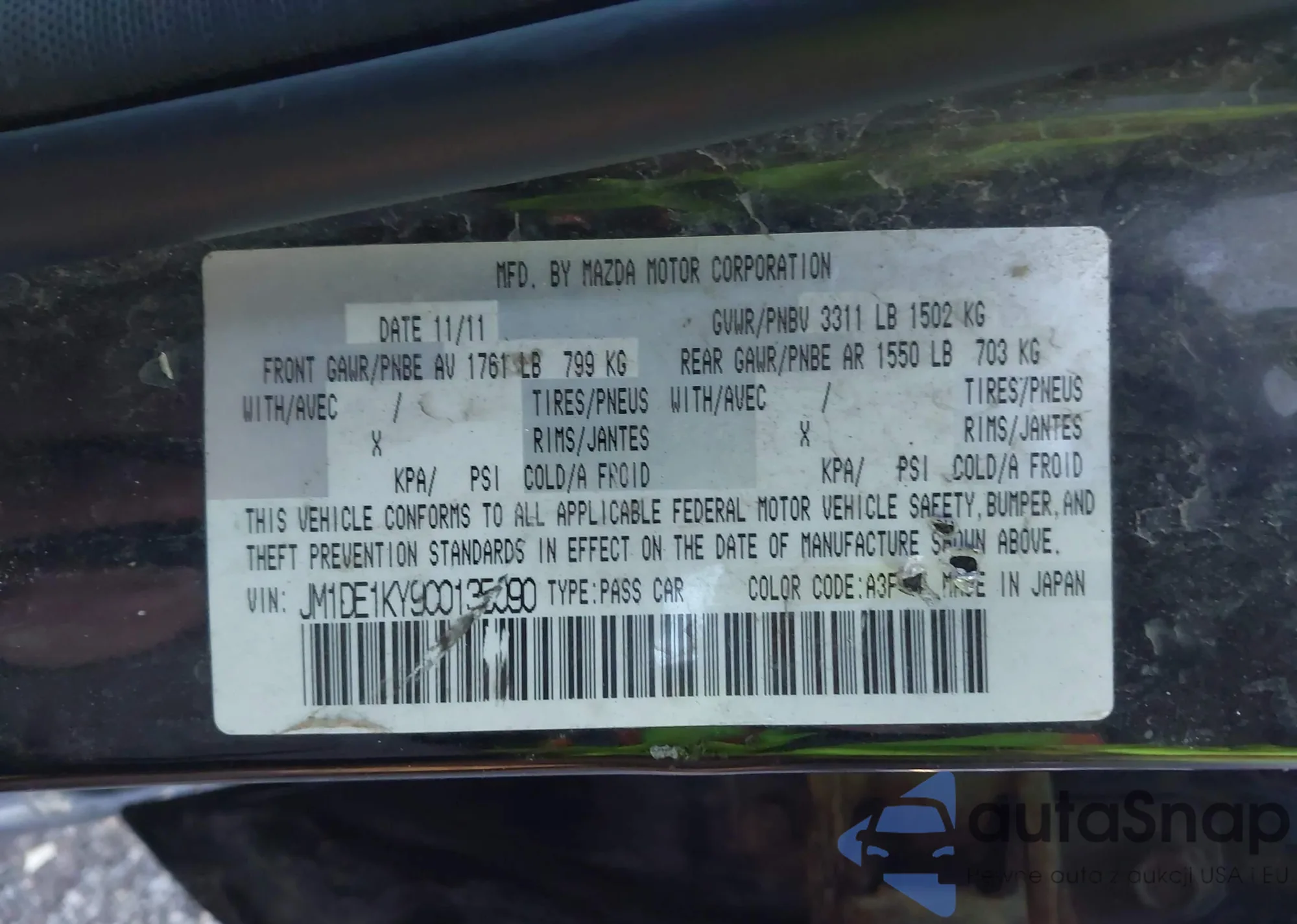 Samochód Mazda 2 2012 (VIN JM1DE1KY9C0135090) ma dokumenty uniemożliwiające rejestrację. Mogą pojawić się trudności przy eksporcie i rejestracji. Skontaktuj się z ekspertami AutaSnap w celu znalezienia alternatywy.