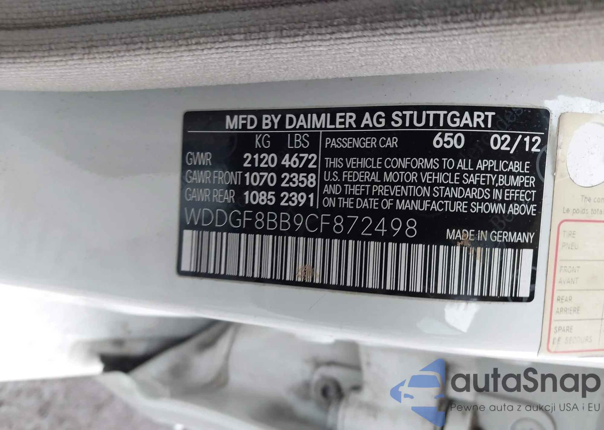 • VIN: WDDGF8BB9CF872498