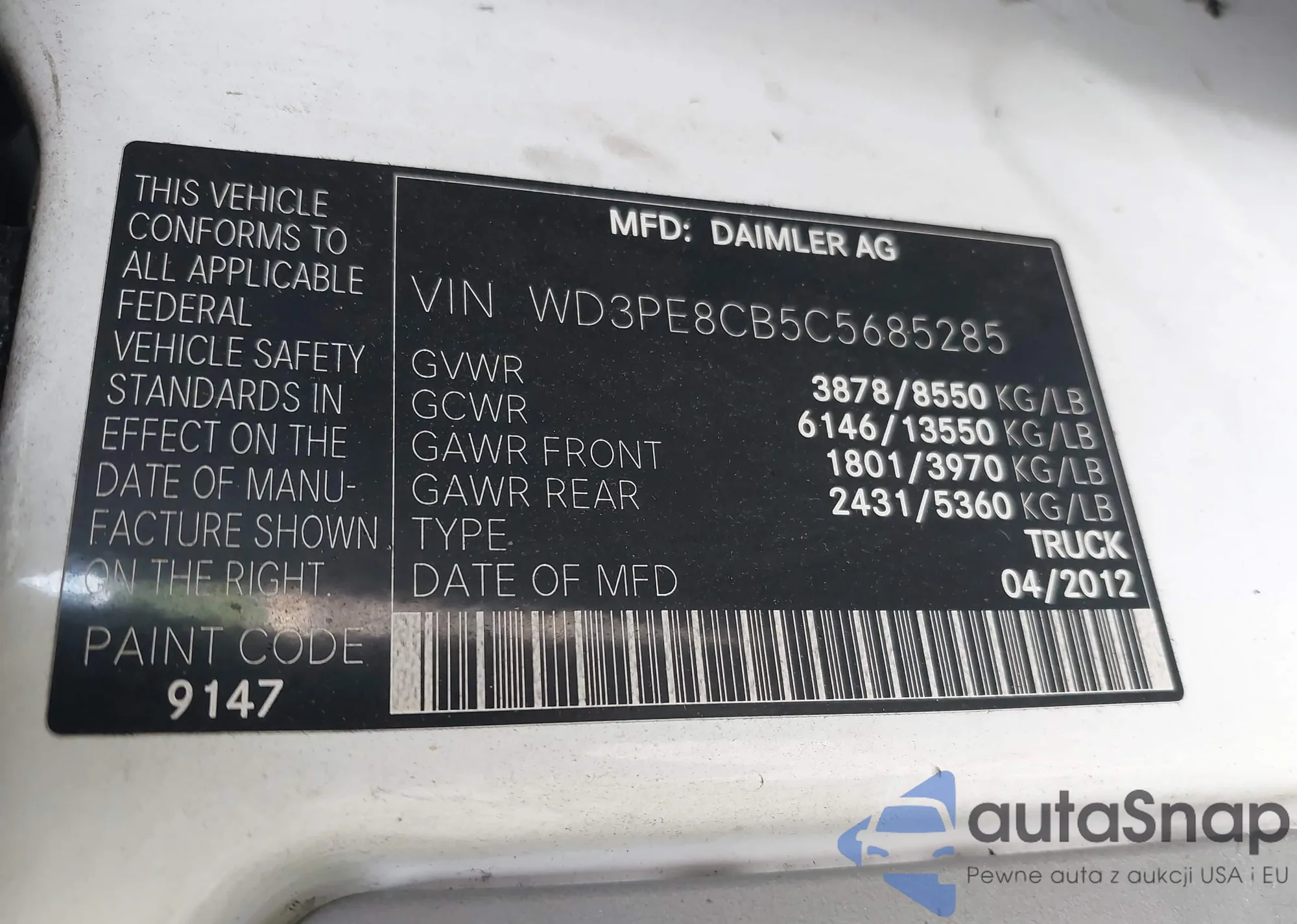 Samochód Mercedes-Benz Sprinter 2012 (VIN WD3PE8CB5C5685285) sprzedaje go niezweryfikowany sprzedawca. Zalecamy raport Carfax i potwierdzenie możliwości rejestracji pojazdu przed zakupem.