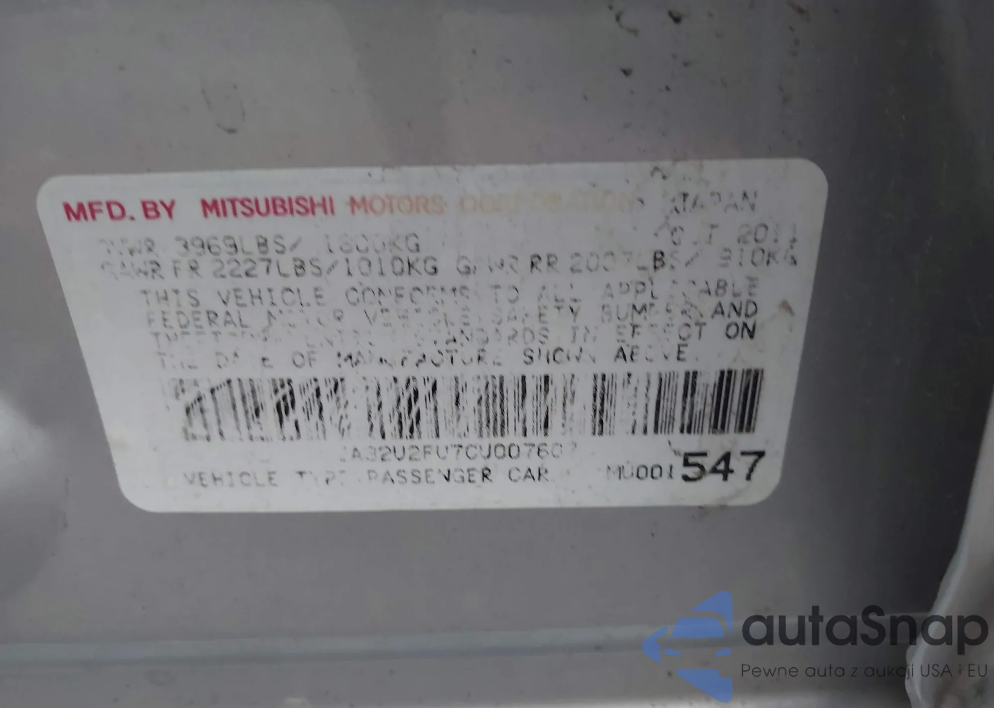 VIN: JA32U2FU7CU007607