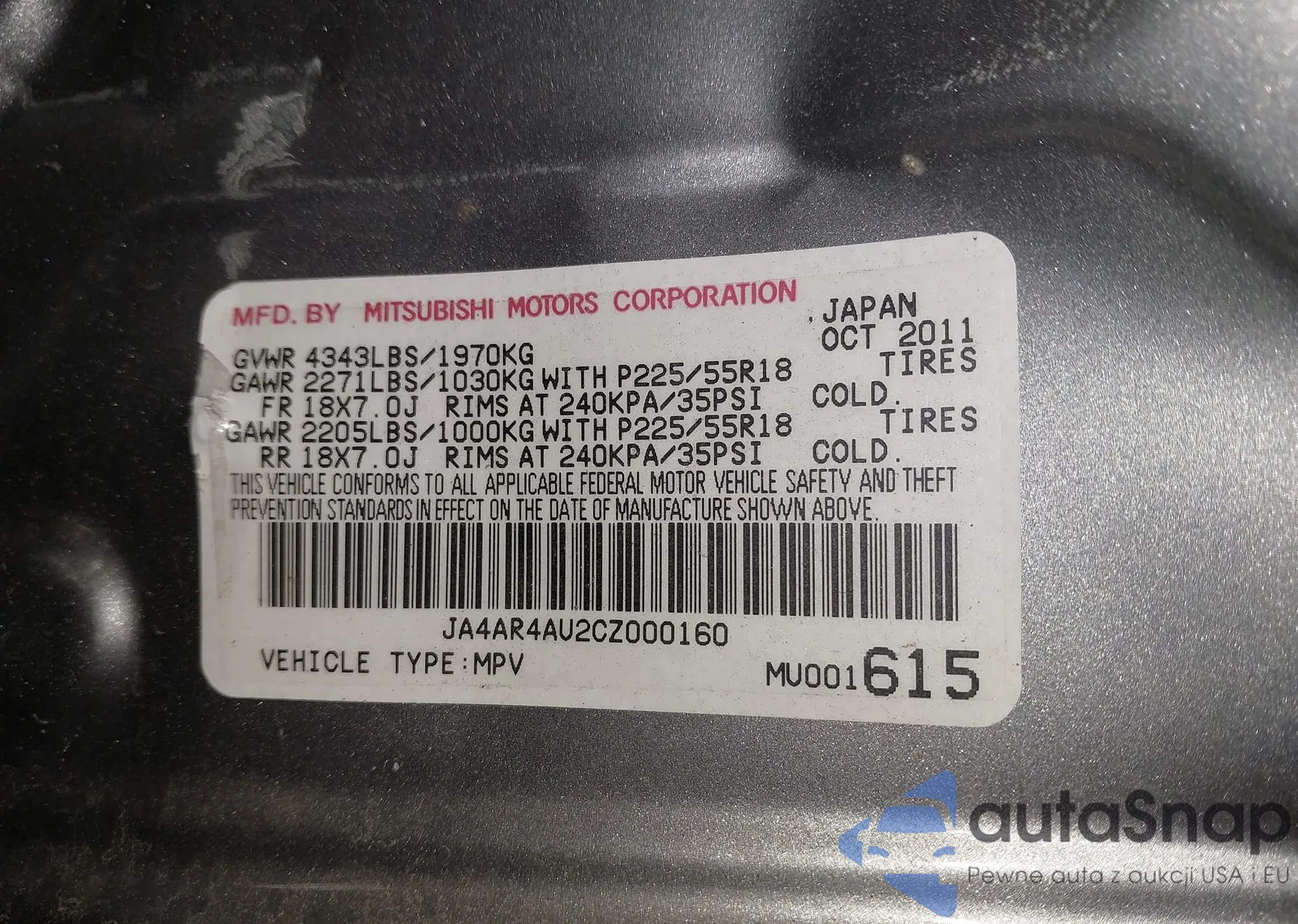 VIN: JA4AR4AU2CZ000160