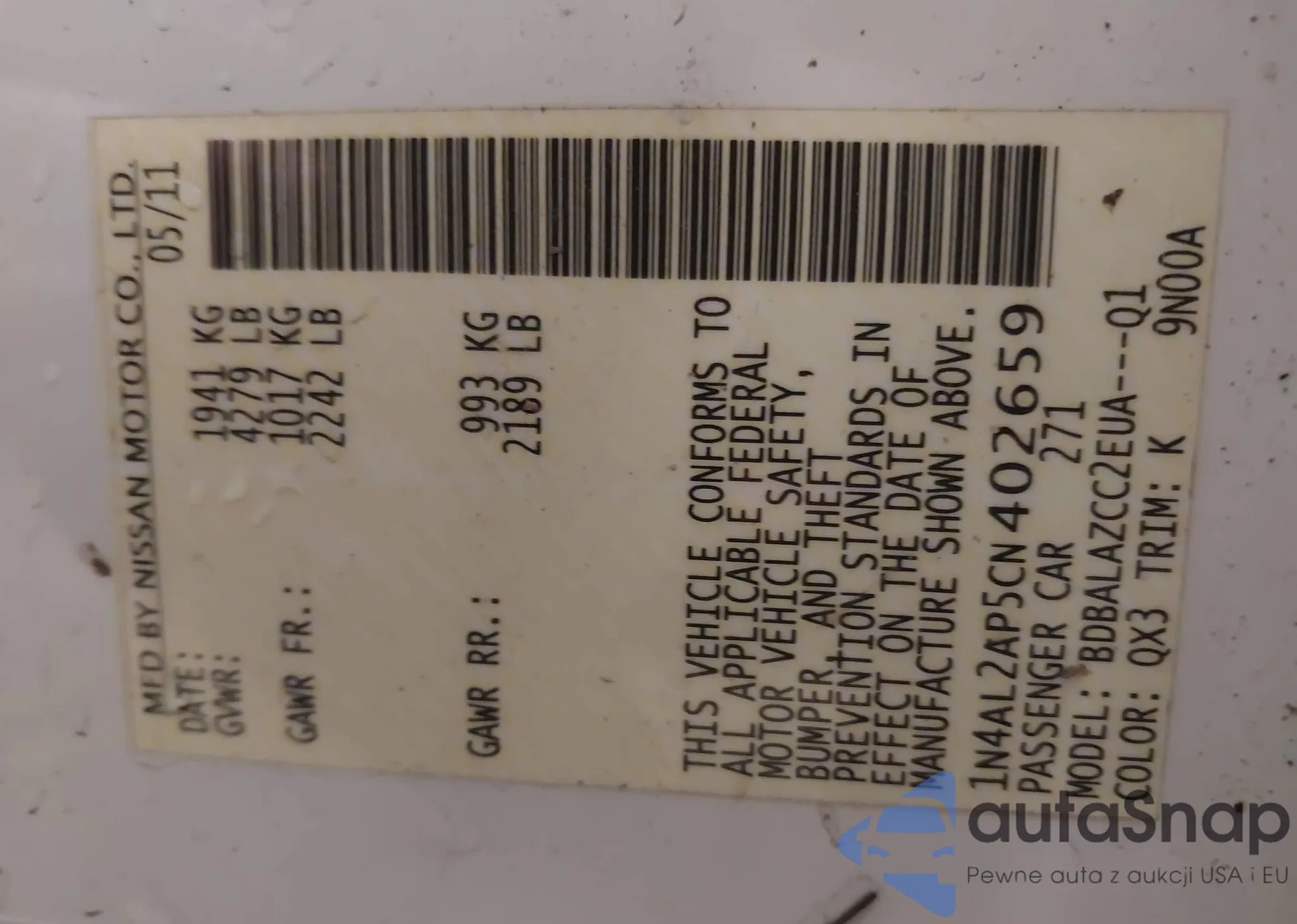 VIN: 1N4AL2AP5CN402659