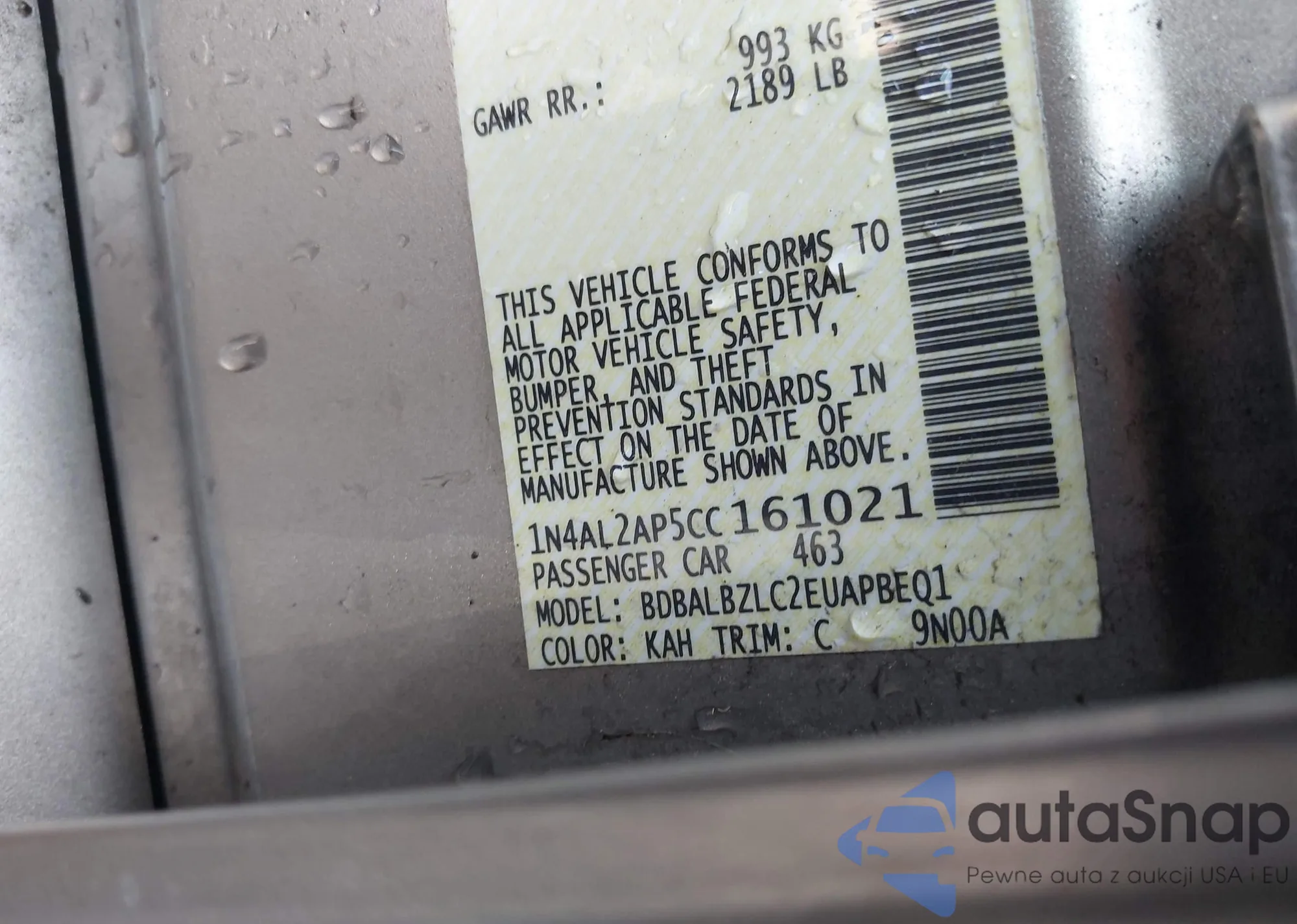 VIN: 1N4AL2AP5CC161021