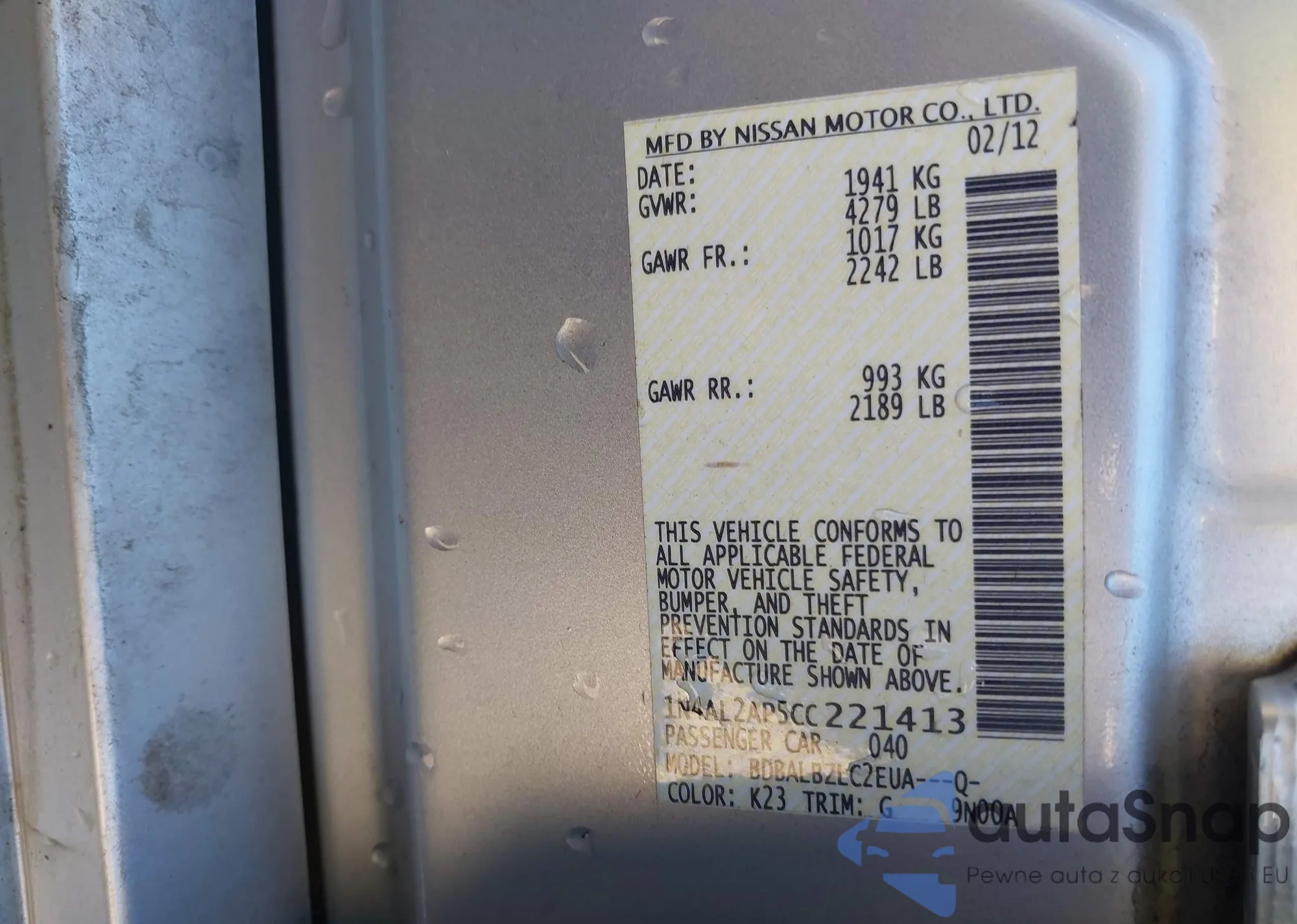 VIN: 1N4AL2AP5CC221413