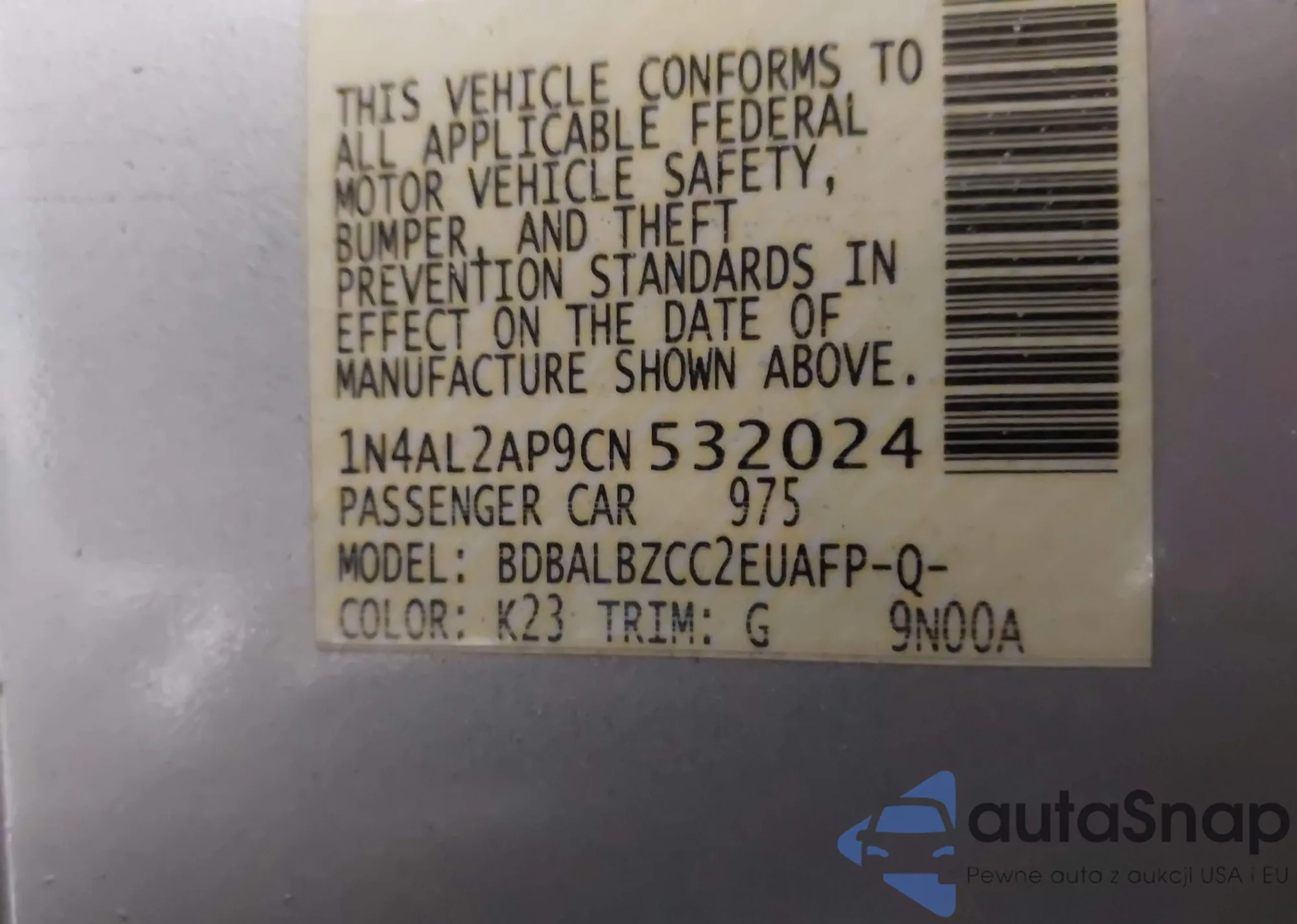 VIN: 1N4AL2AP9CN532024