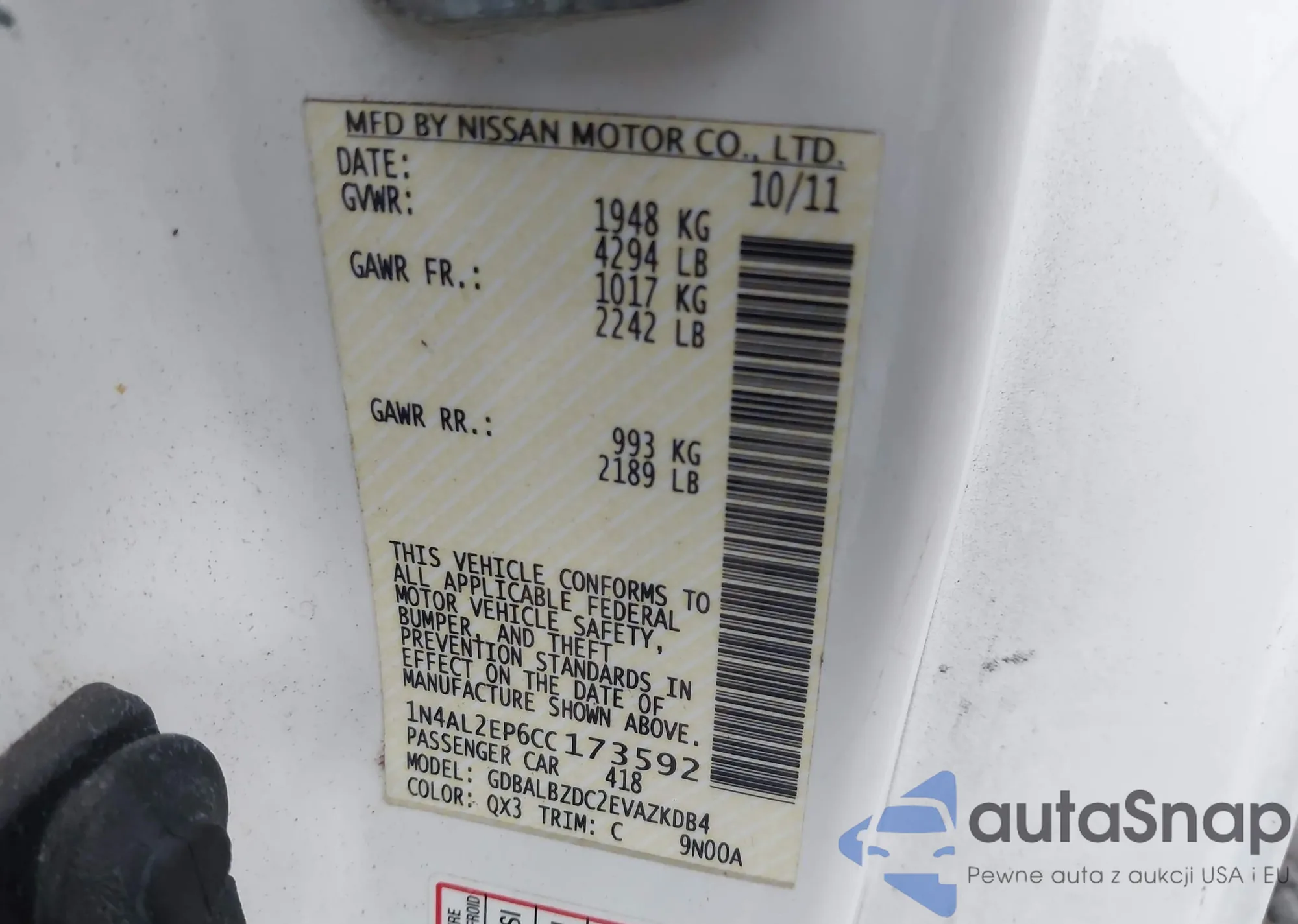 VIN: 1N4AL2EP6CC173592