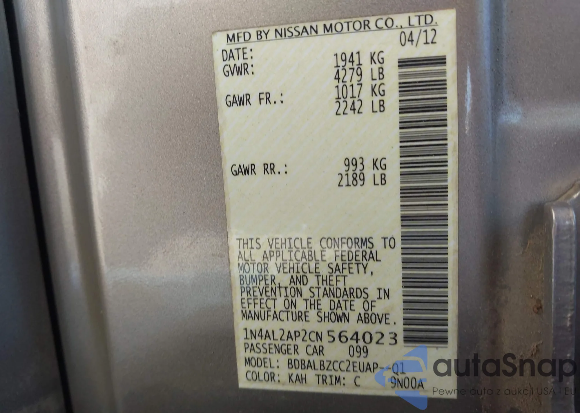 VIN: 1N4AL2AP2CN564023