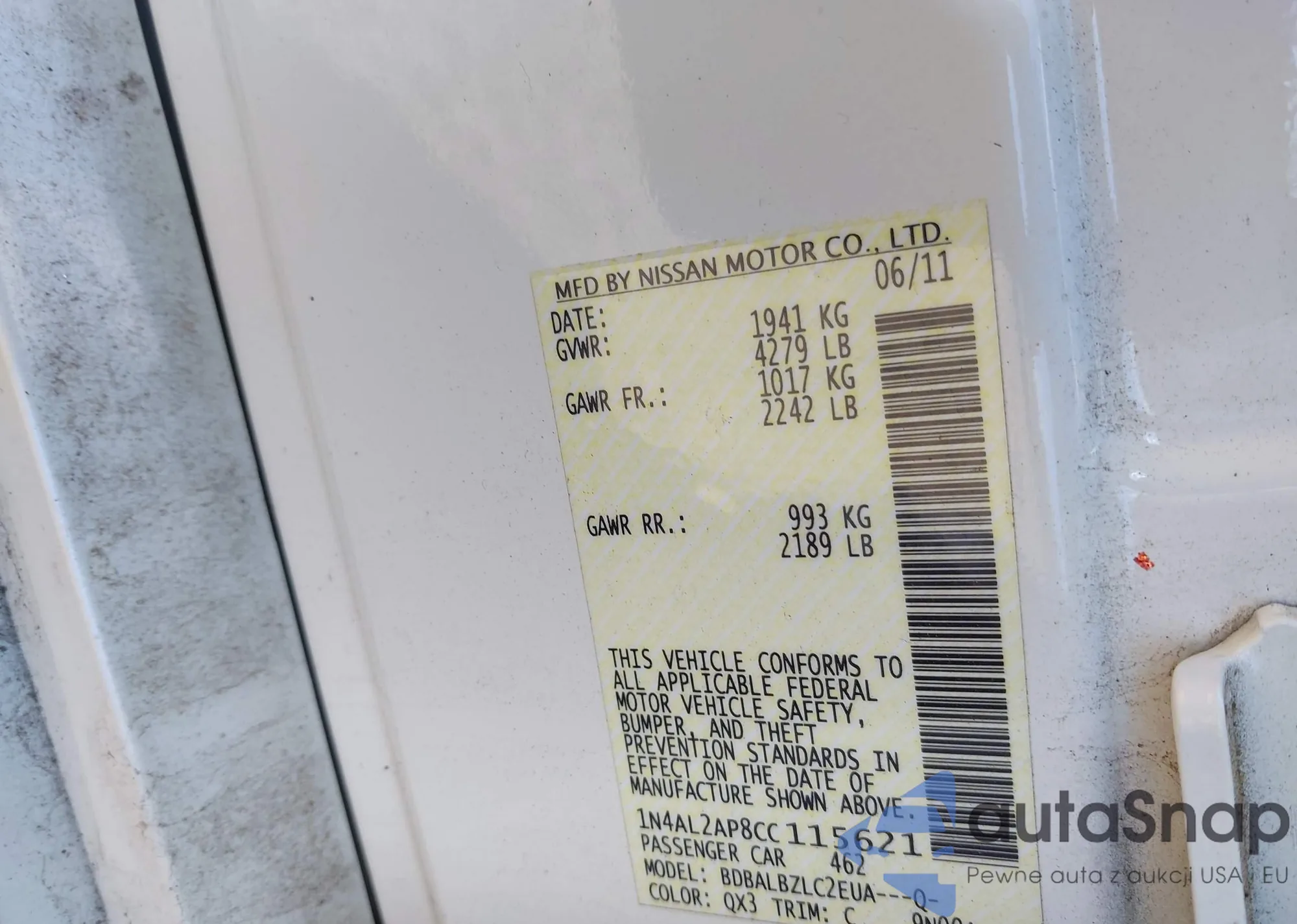 VIN: 1N4AL2AP8CC115621