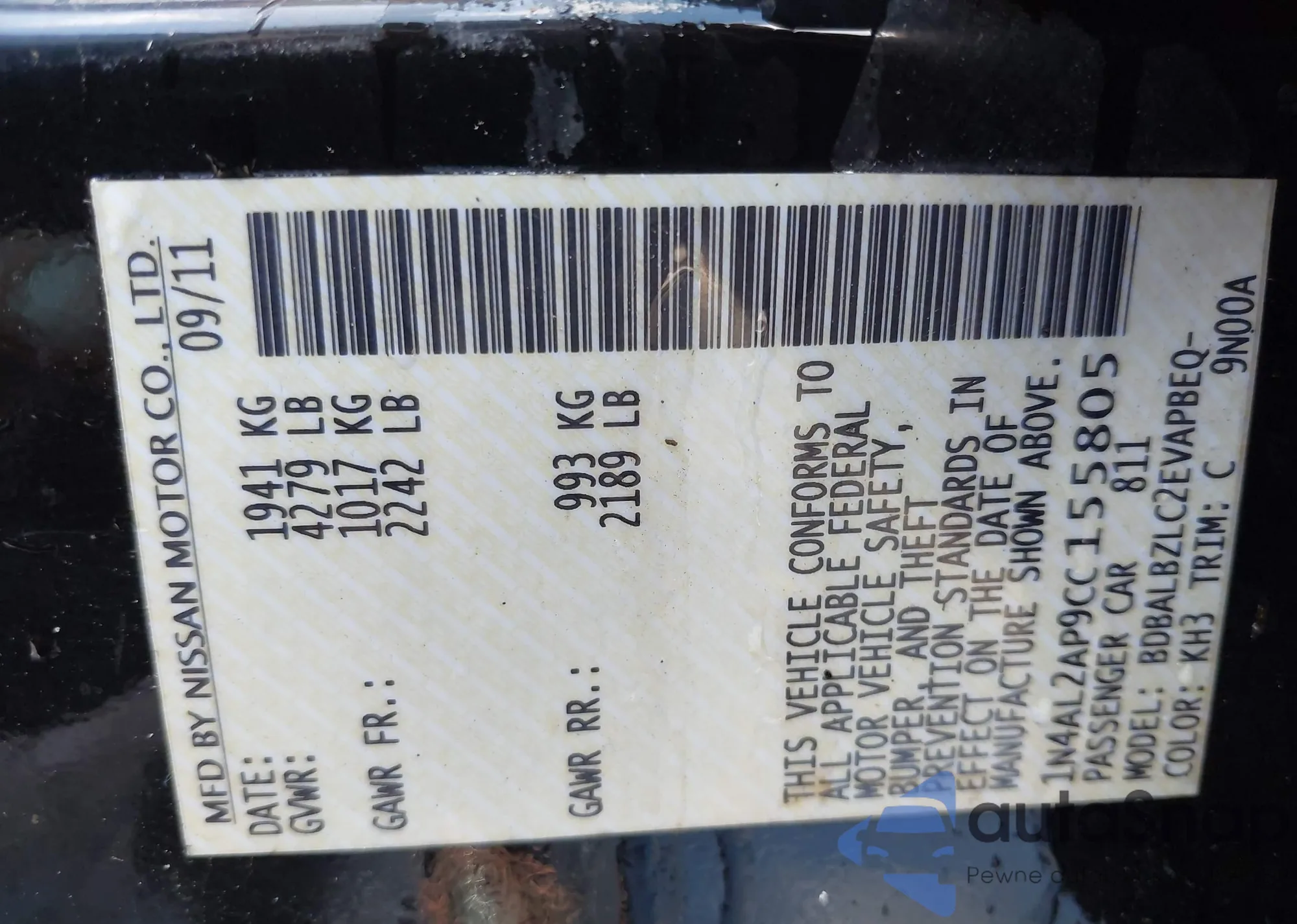 VIN: 1N4AL2AP9CC155805