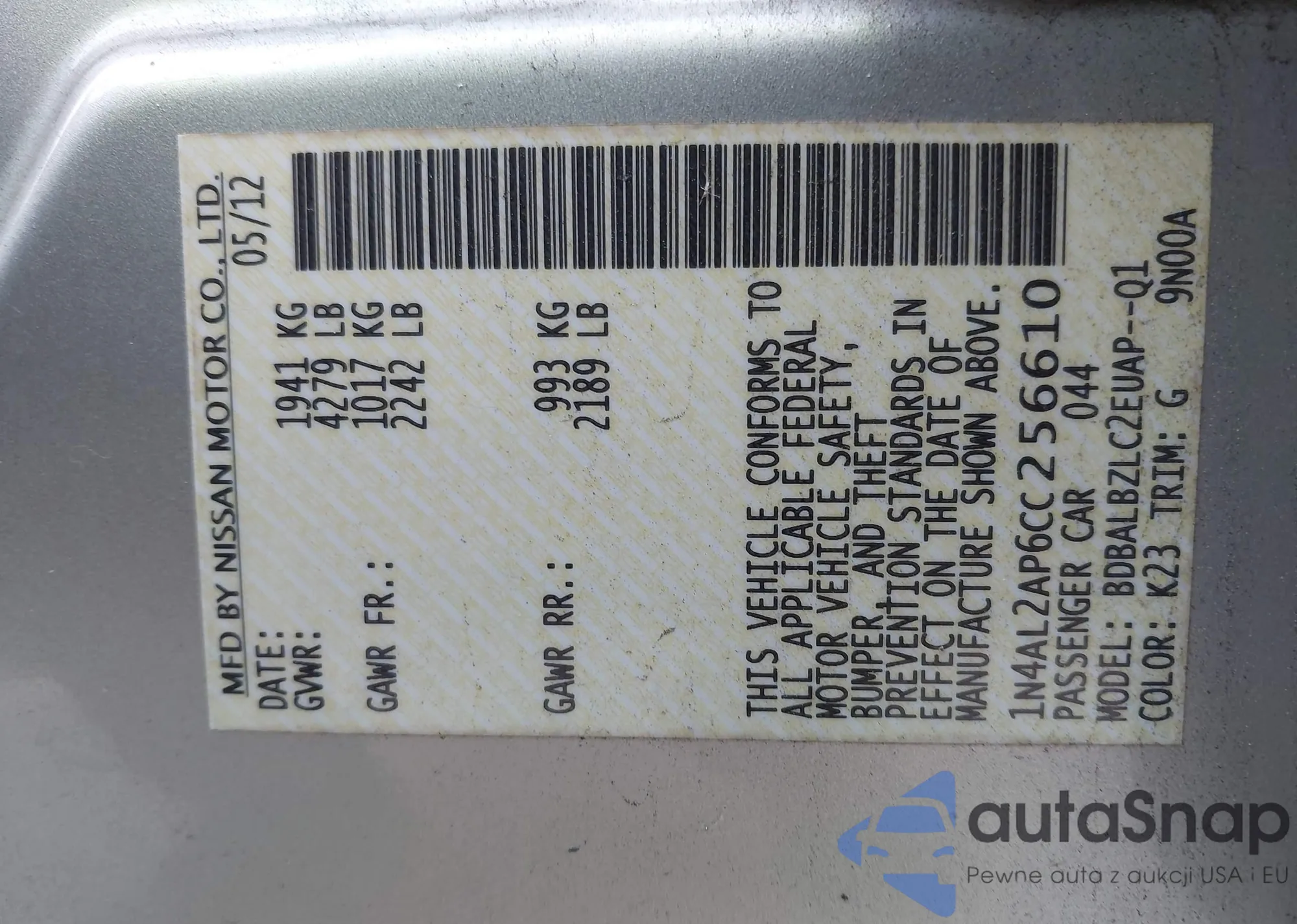 VIN: 1N4AL2AP6CC256610