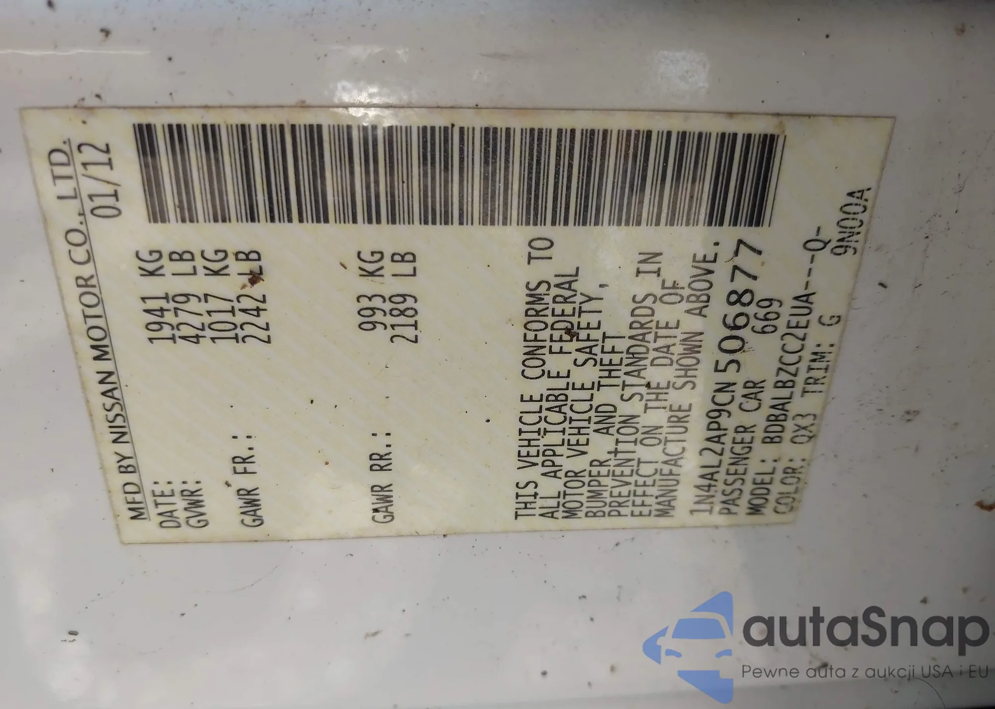 VIN: 1N4AL2AP9CN506877