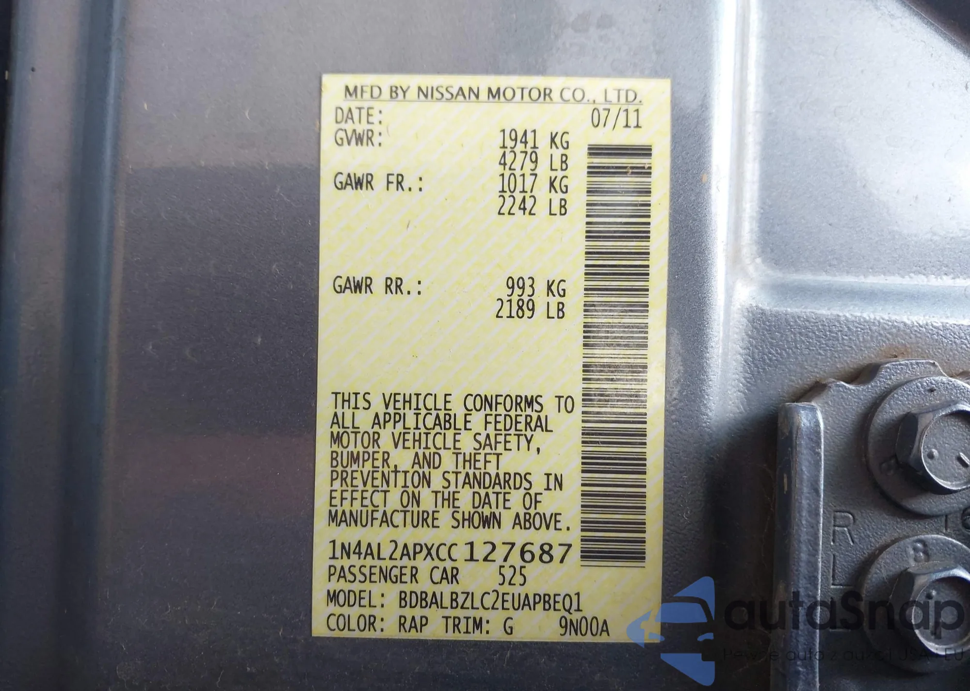 VIN: 1N4AL2APXCC127687