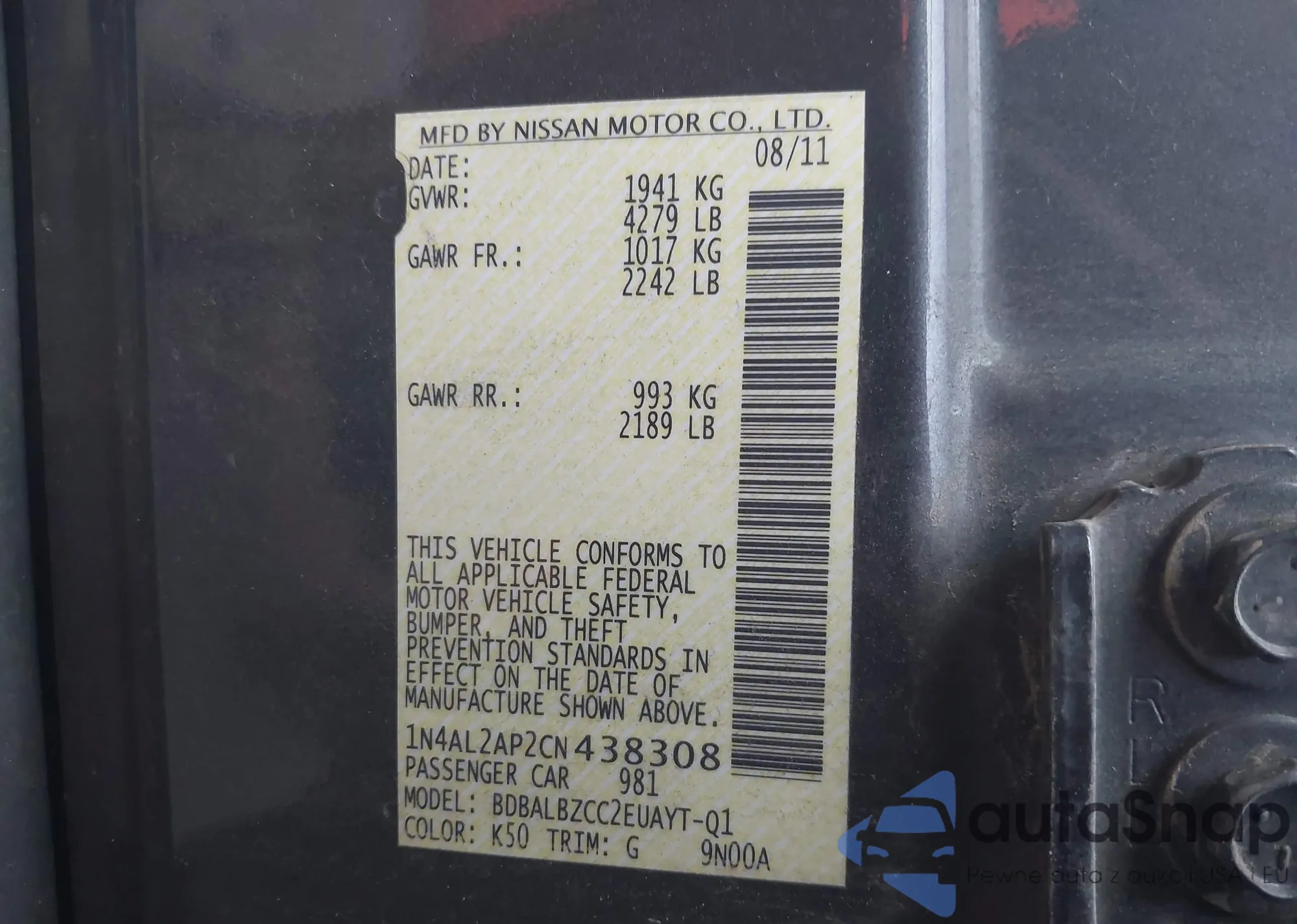 • VIN: 1N4AL2AP2CN438308