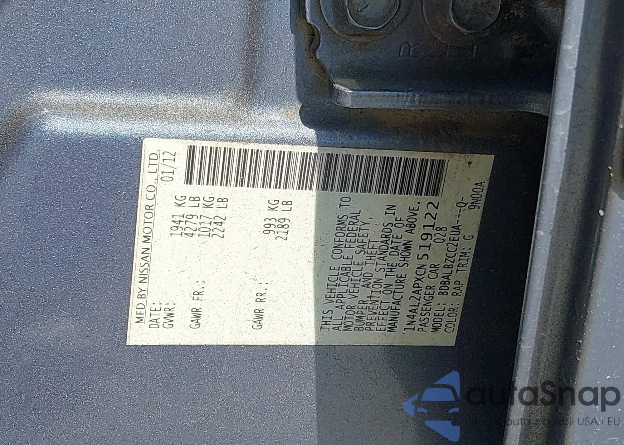 VIN: 1N4AL2APXCN519122