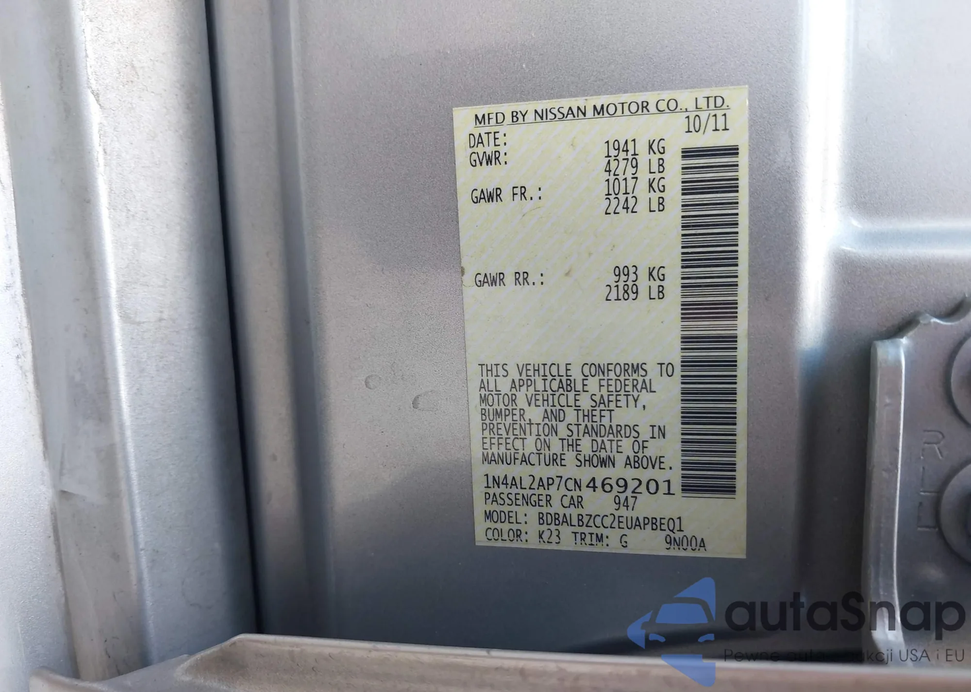 VIN: 1N4AL2AP7CN469201