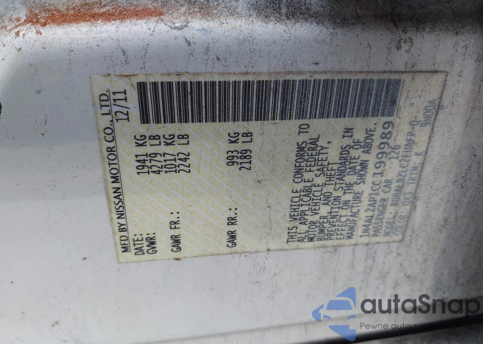 VIN: 1N4AL2AP1CC199989