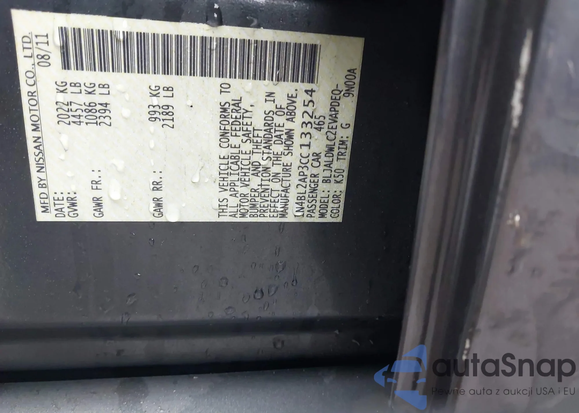 VIN: 1N4BL2AP3CC133254