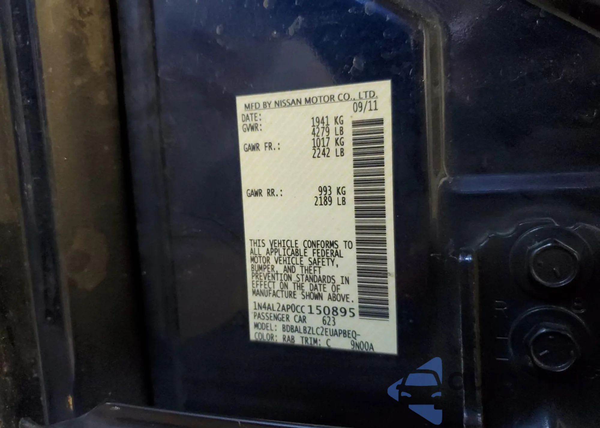 VIN: 1N4AL2AP0CC150895