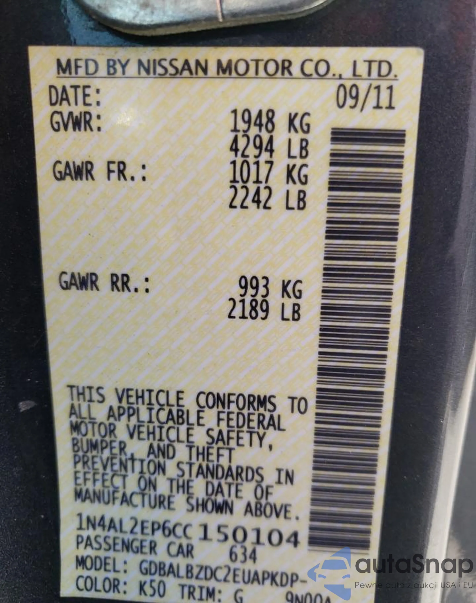 VIN: 1N4AL2EP6CC150104