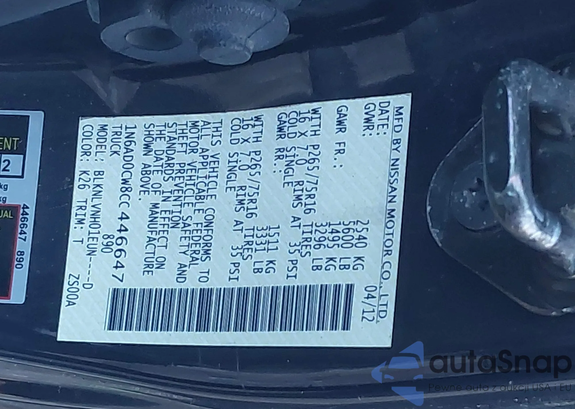 • VIN: 1N6AD0CW8CC446647