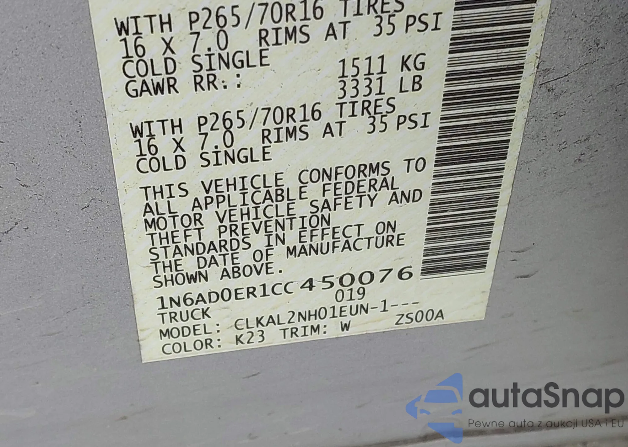 VIN: 1N6AD0ER1CC450076