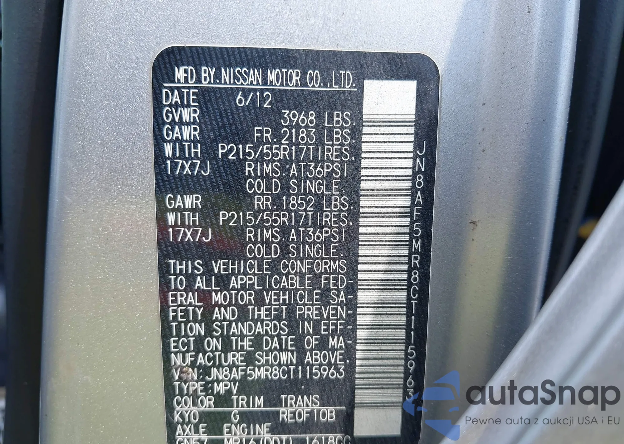 • VIN: JN8AF5MR8CT115963