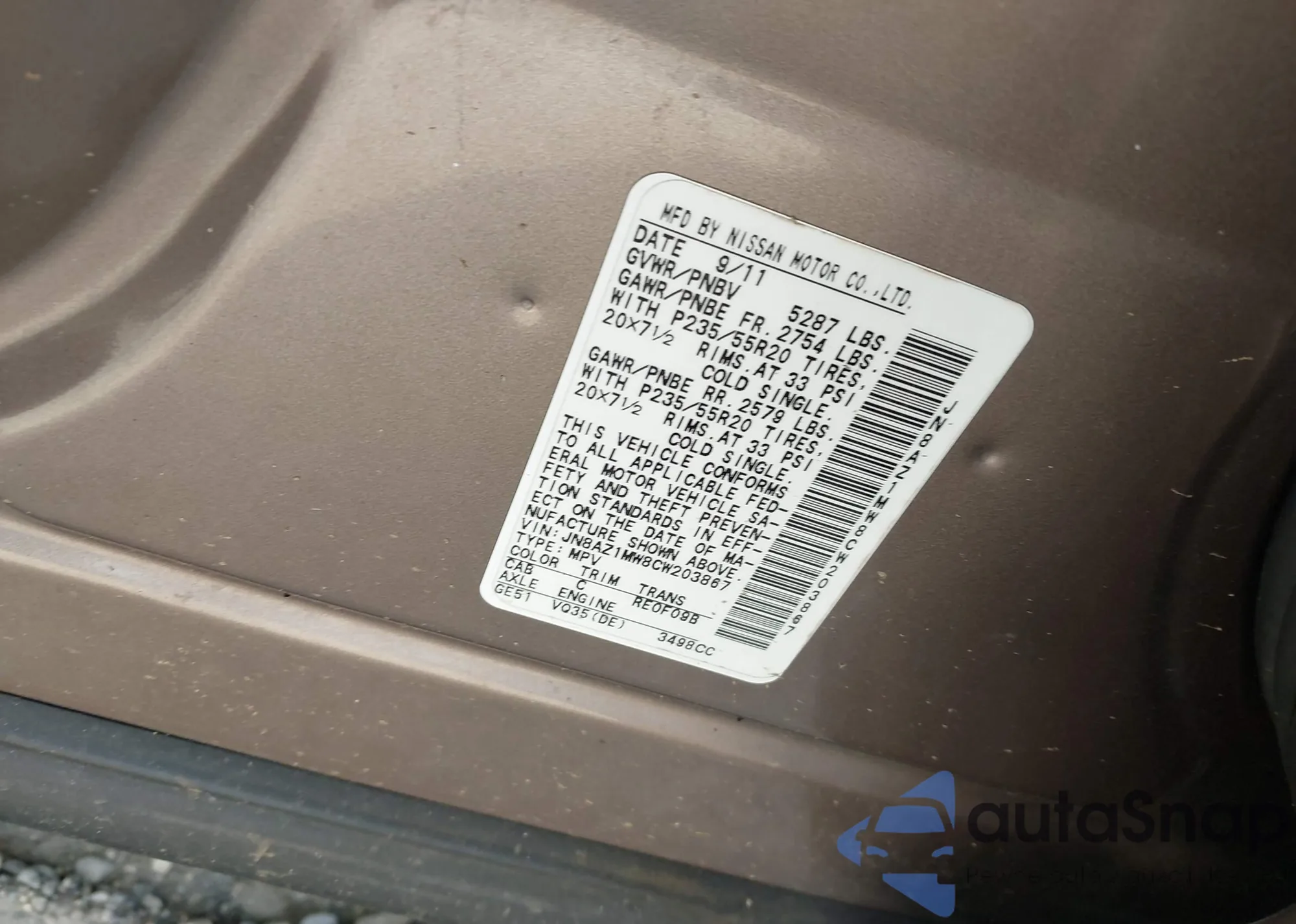 VIN: JN8AZ1MW8CW203867
