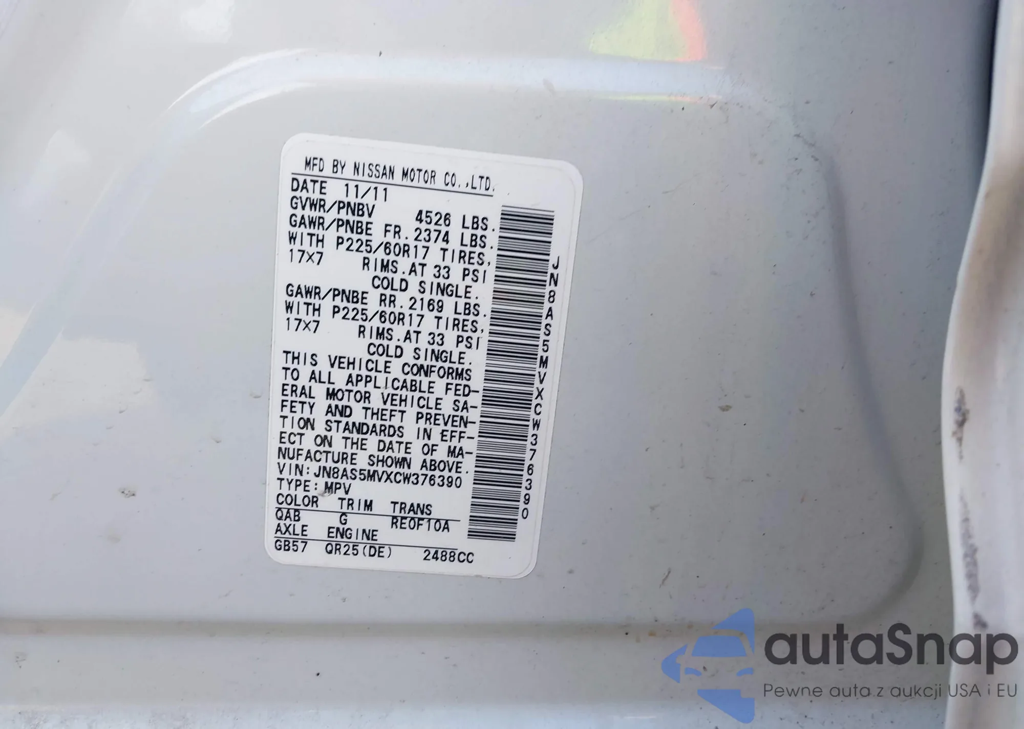 VIN: JN8AS5MVXCW376390