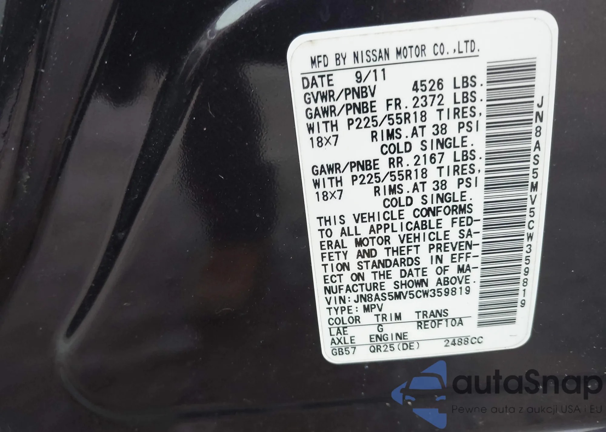 VIN: JN8AS5MV5CW359819