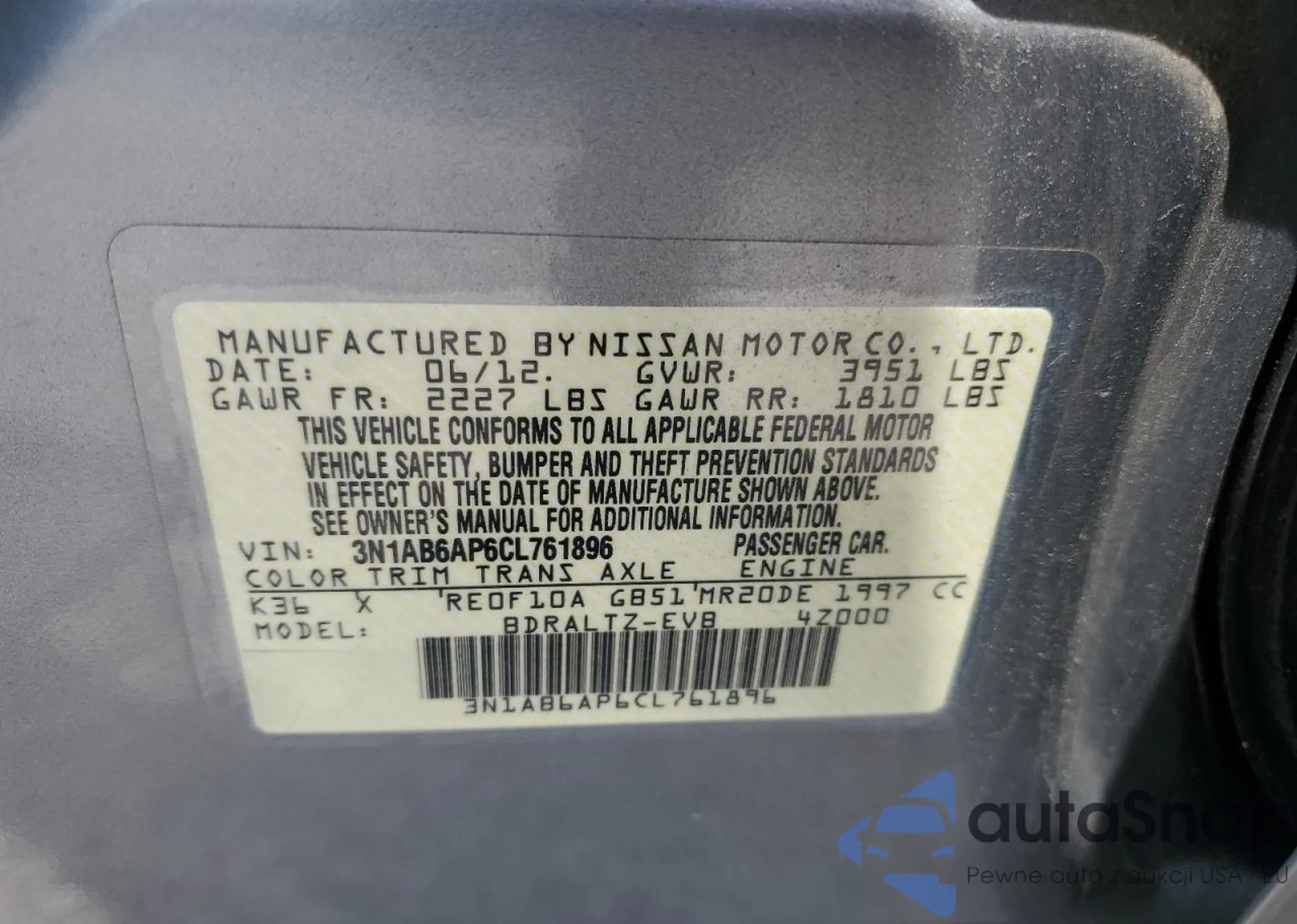 VIN: 3N1AB6AP6CL761896