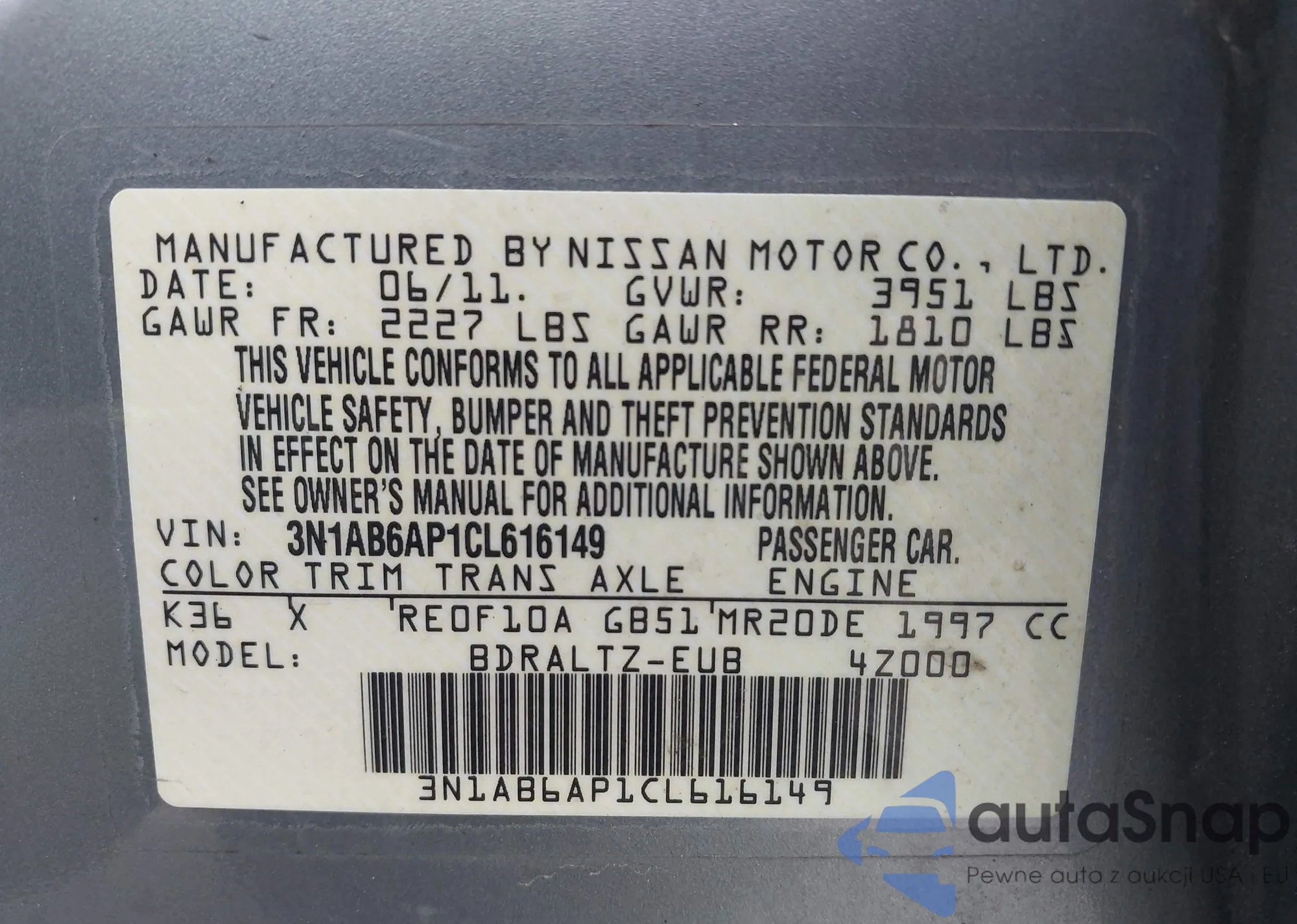 VIN: 3N1AB6AP1CL616149
