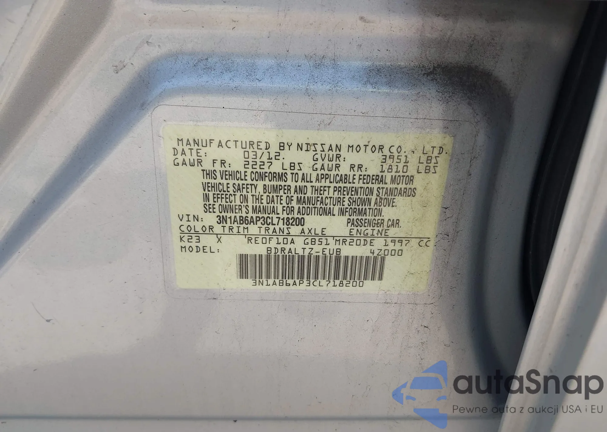 • VIN: 3N1AB6AP3CL718200