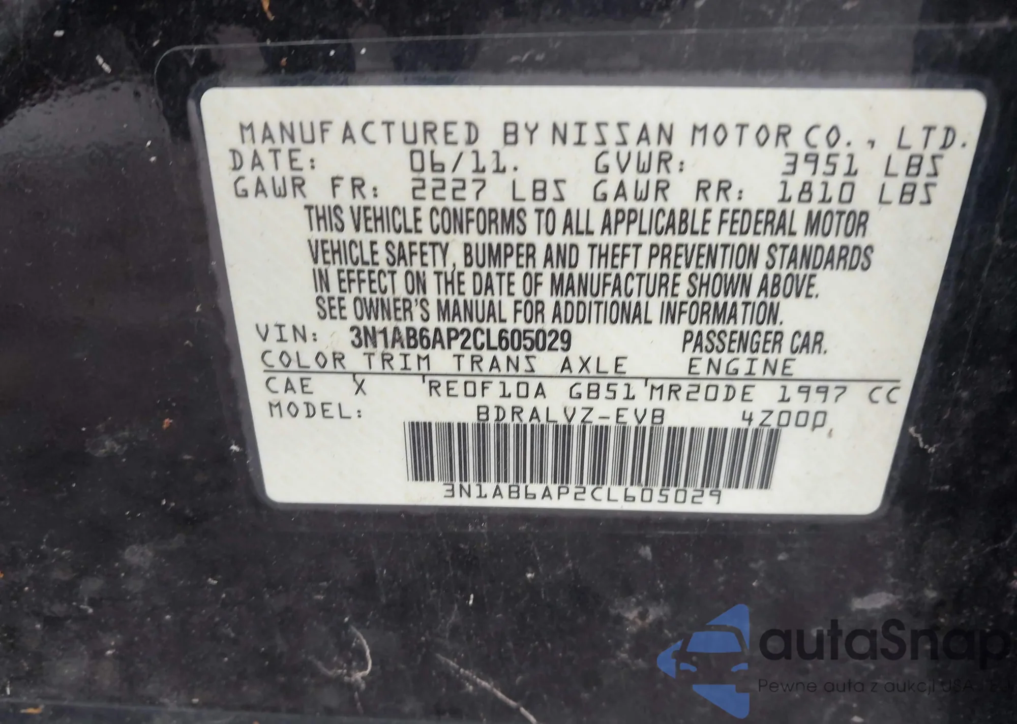 Nissan Sentra 2012 – Historia pojazdu (sprzedany na IAAI)