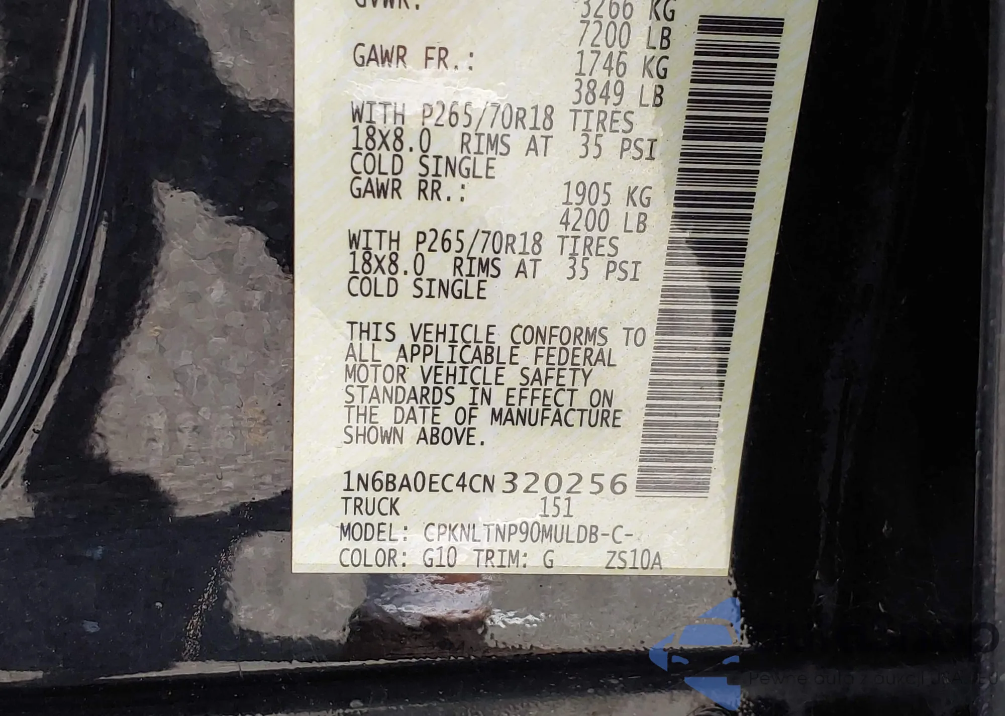 • VIN: 1N6BA0EC4CN320256