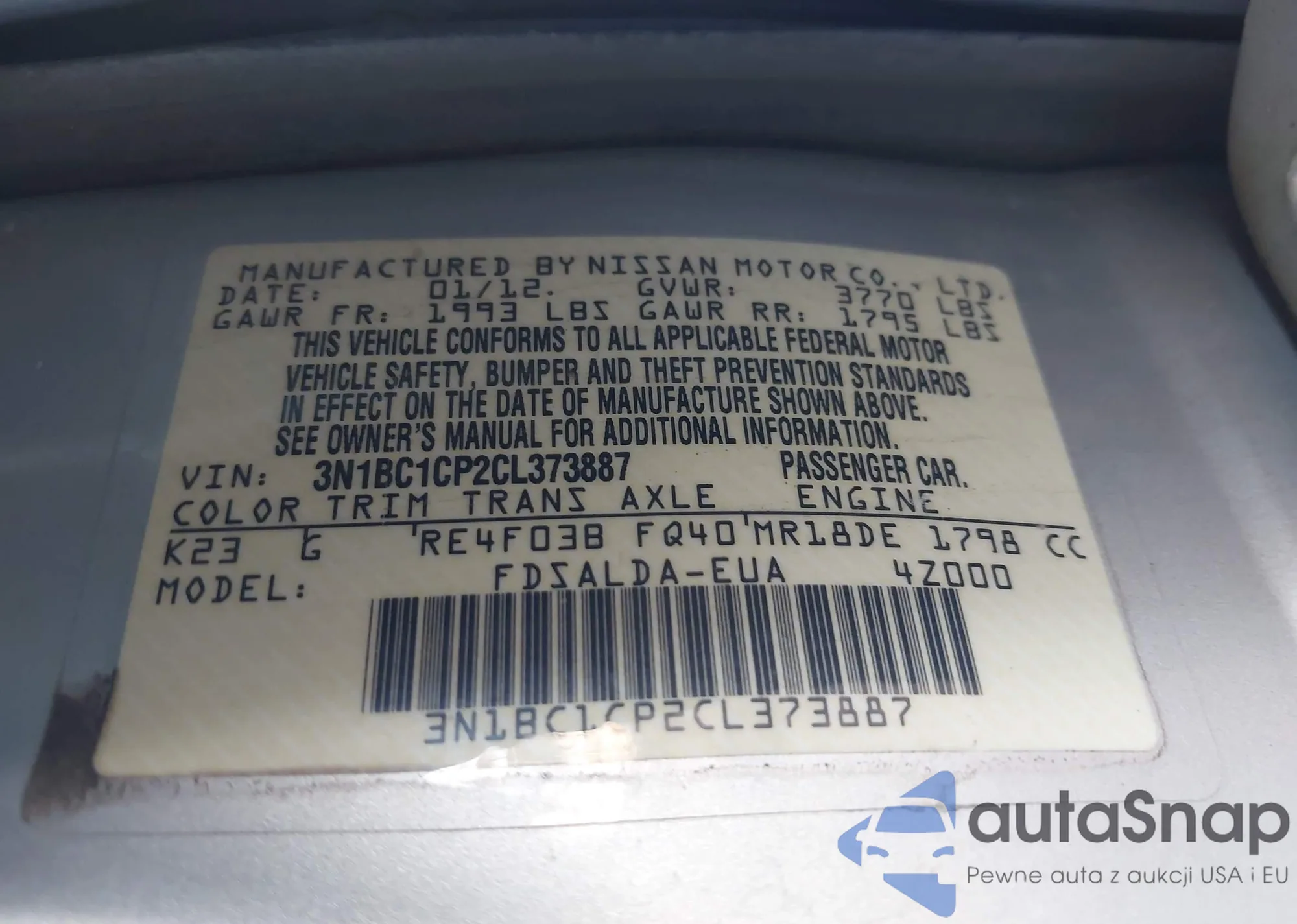 VIN: 3N1BC1CP2CL373887