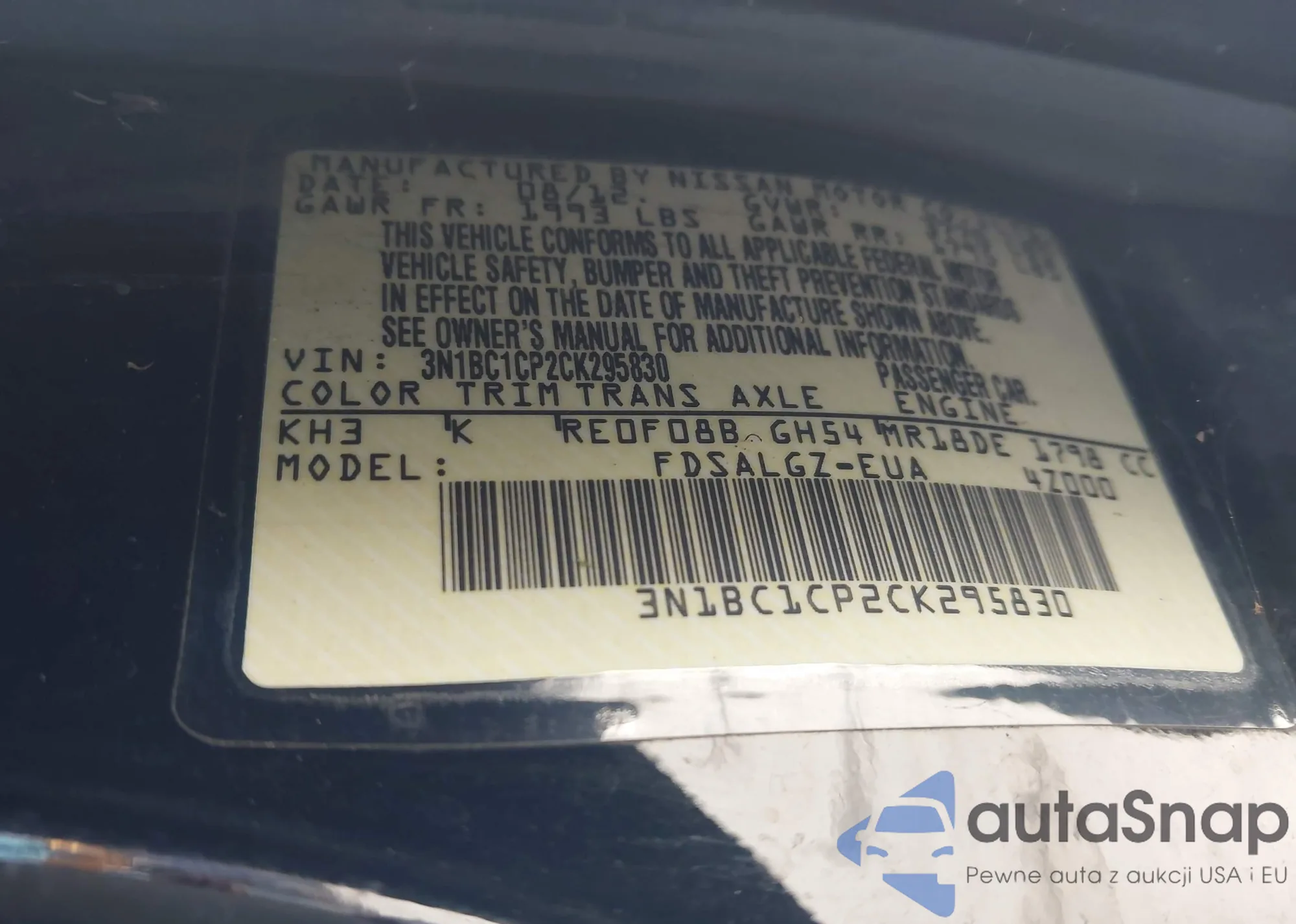 VIN: 3N1BC1CP2CK295830