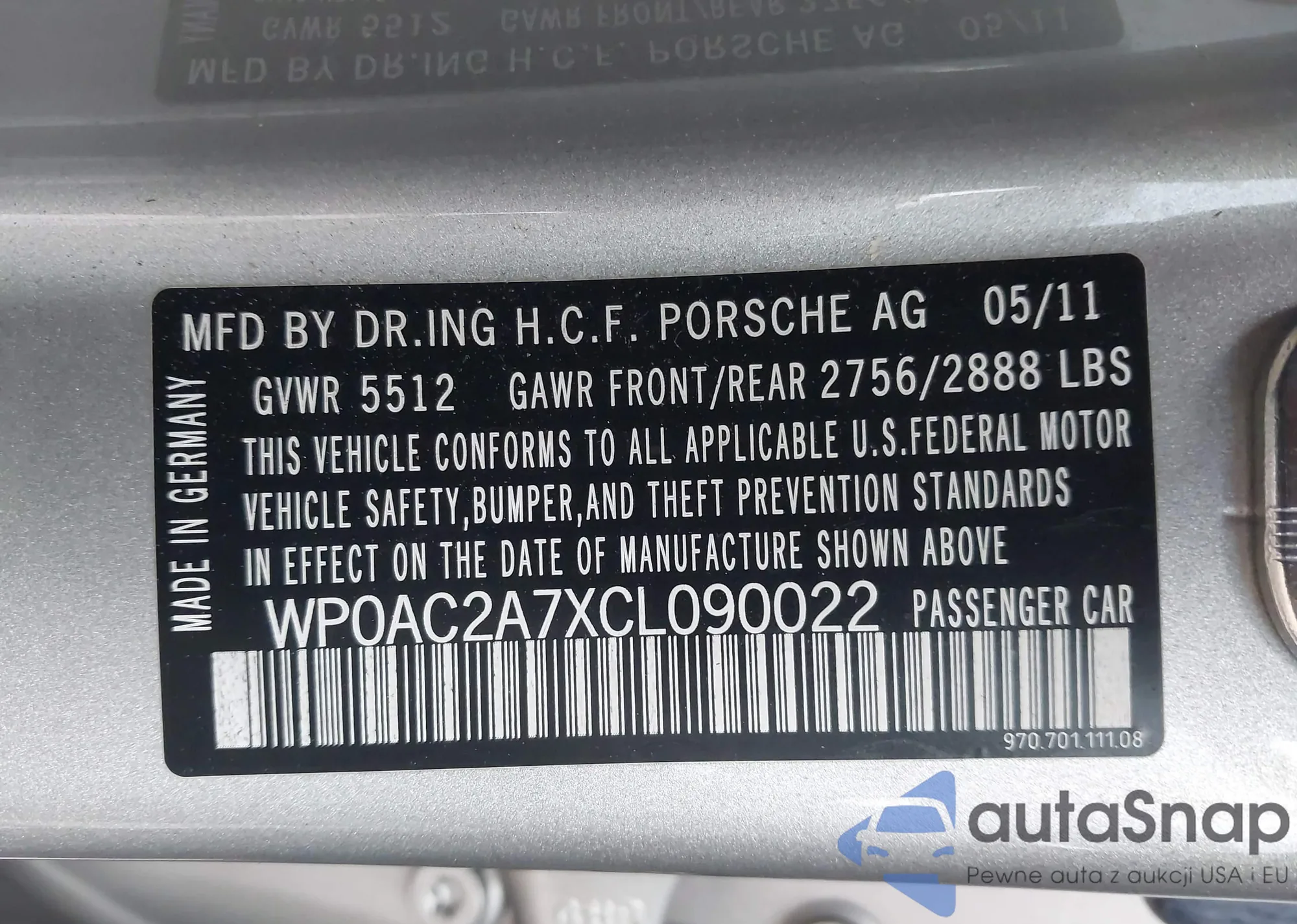 Samochód Porsche Panamera 2012 (VIN WP0AC2A7XCL090022) nie był wcześniej licytowany. Dokumenty są czyste, przebieg odpowiada lub jest niższy niż średnia rynku. Sprzedaje go firma ubezpieczeniowa – polecamy zakup. Dostawa do portu zajmie ok. 6–8 tygodni.