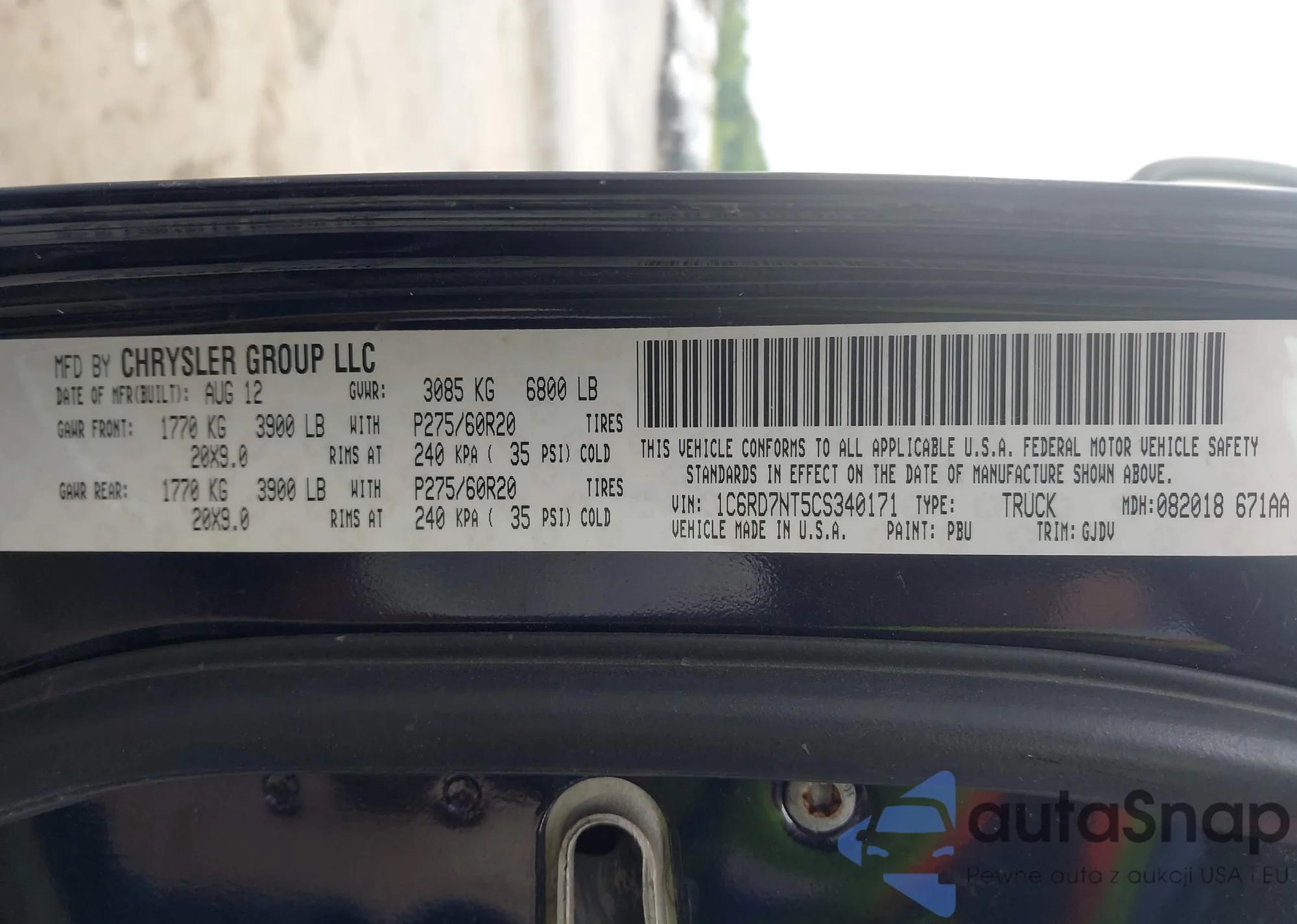 VIN: 1C6RD7NT5CS340171