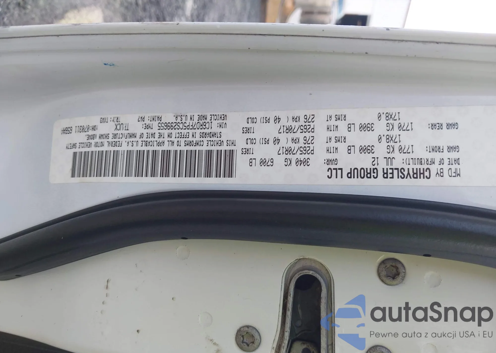 VIN: 1C6RD7FP5CS299655