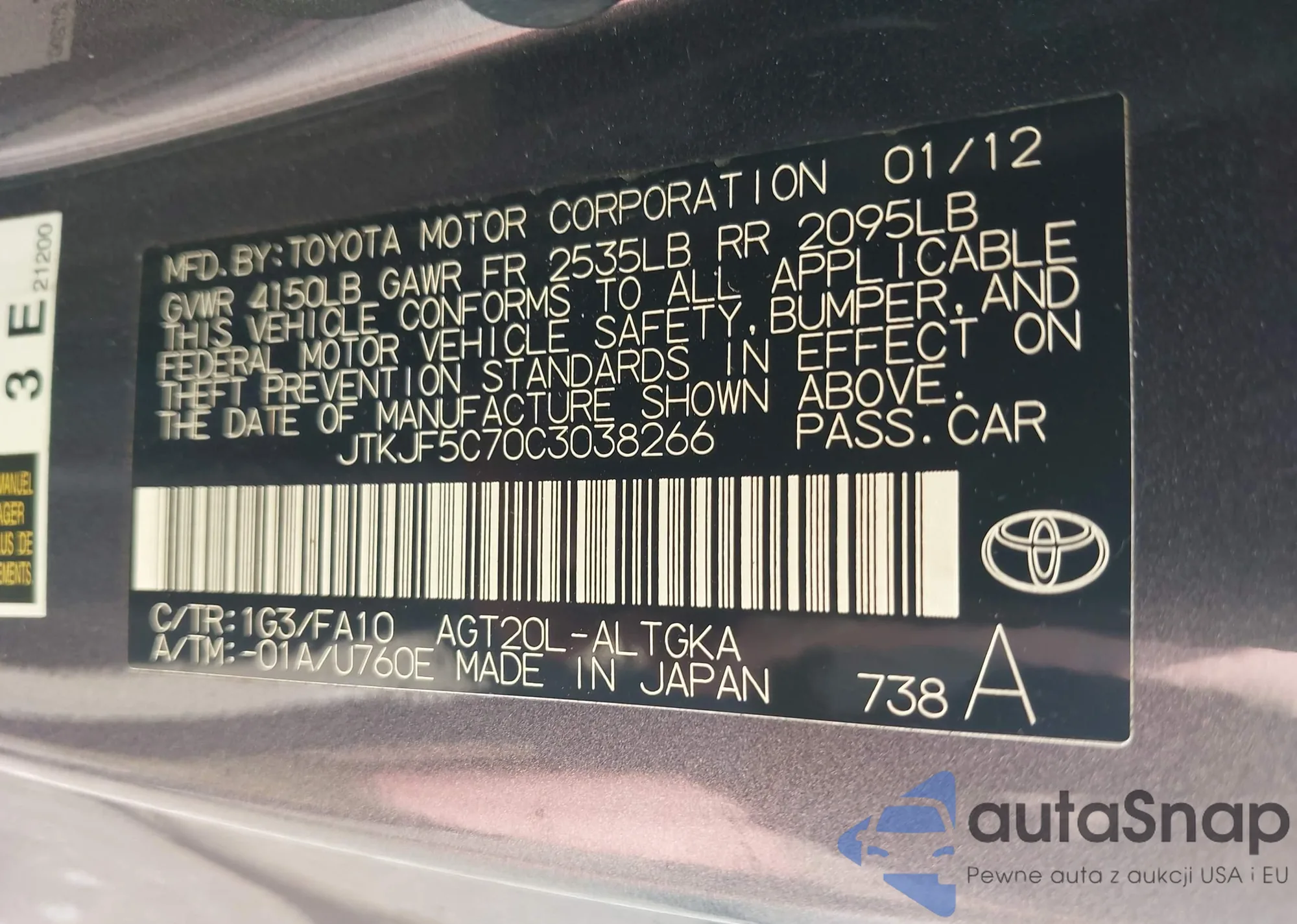 VIN: JTKJF5C70C3038266