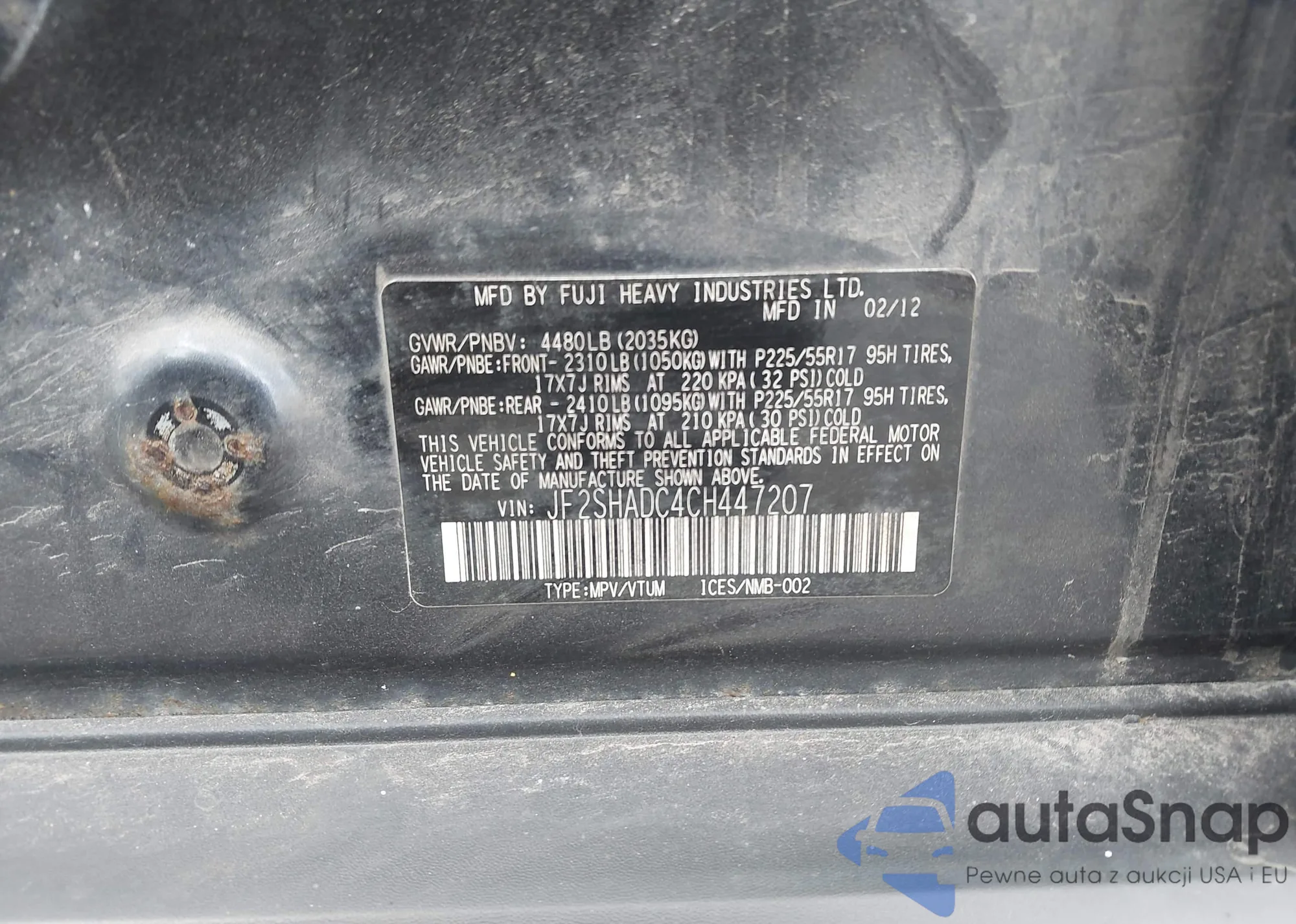 VIN: JF2SHADC4CH447207