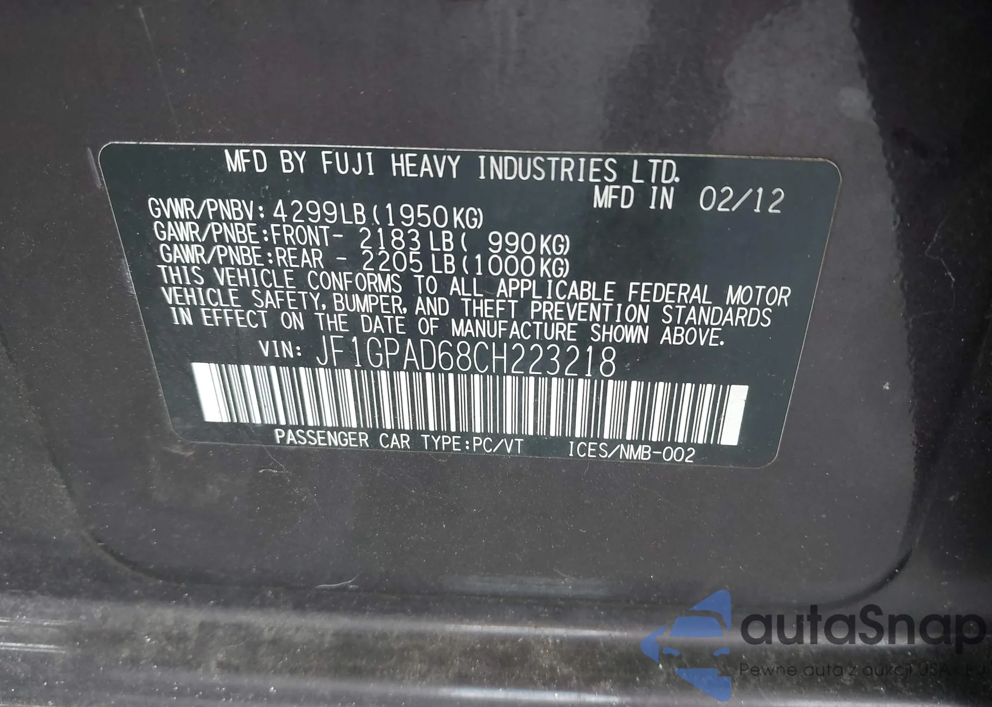 VIN: JF1GPAD68CH223218
